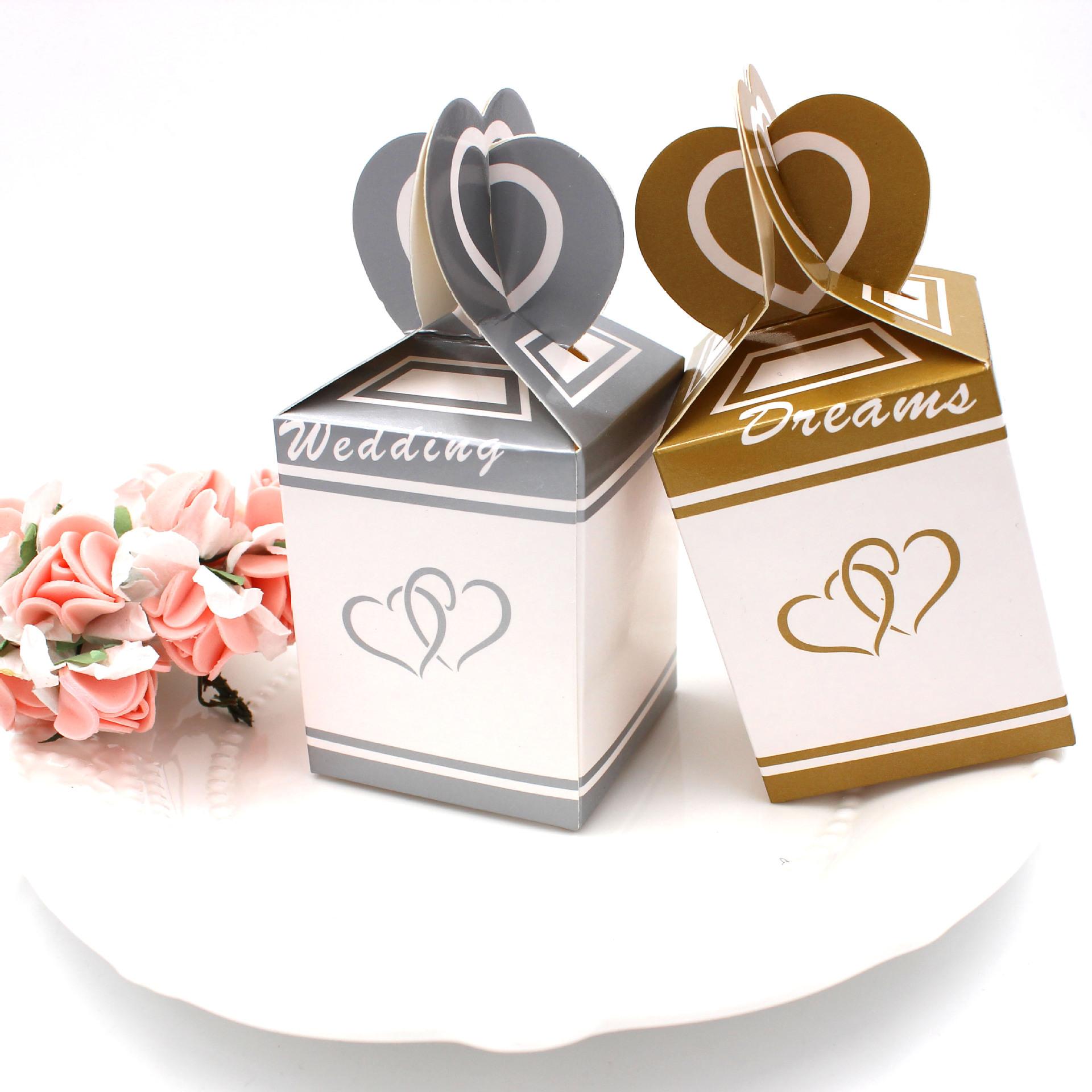 Descripción del producto: Caja para dulces y huevos de boda estilo europeo Boda doble corazón regalo de agradecimiento caja para snacks de chocolate caja para dulces plegable