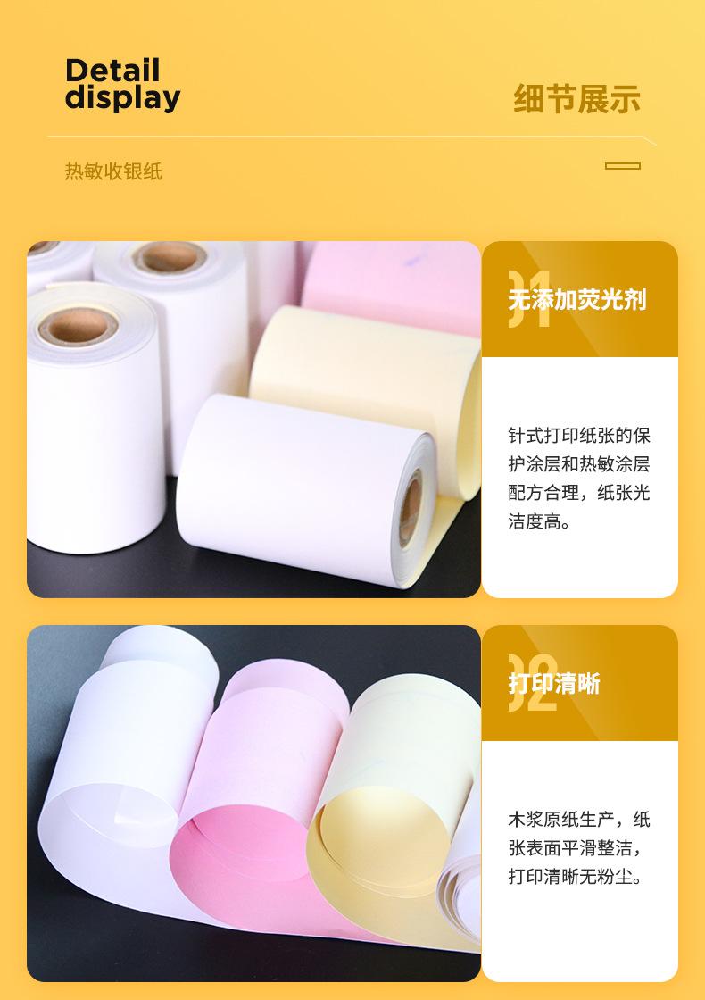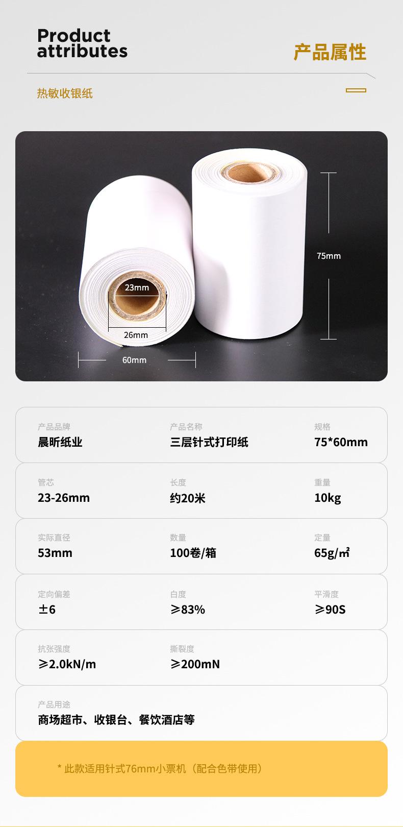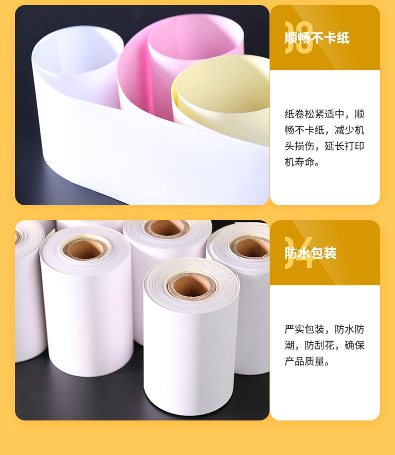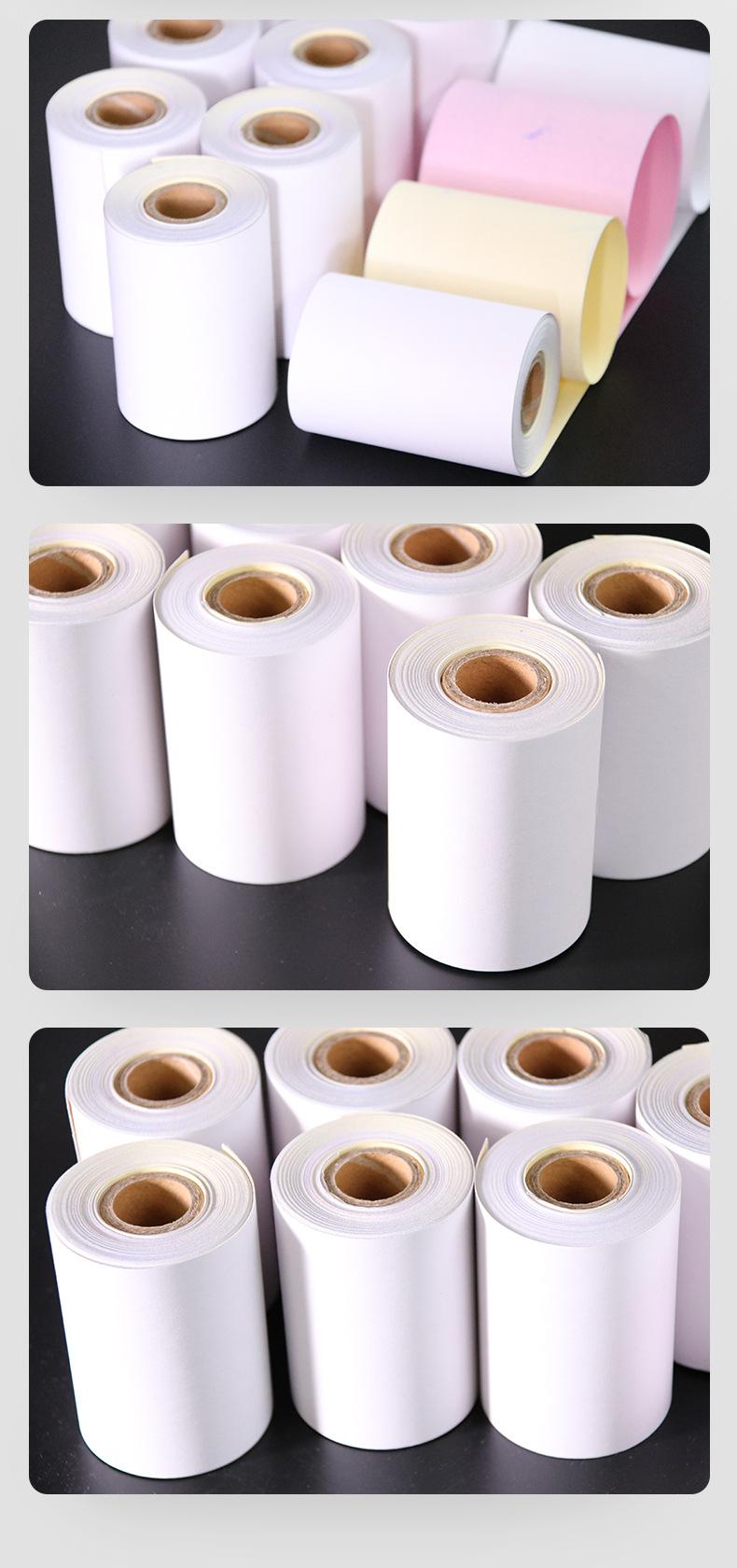 75*60 papel carbón sin carbón para caja registradora triple doble pegamento papel para caja registradora papel tricapa para impresión con aguja papel para tickets super pequeños