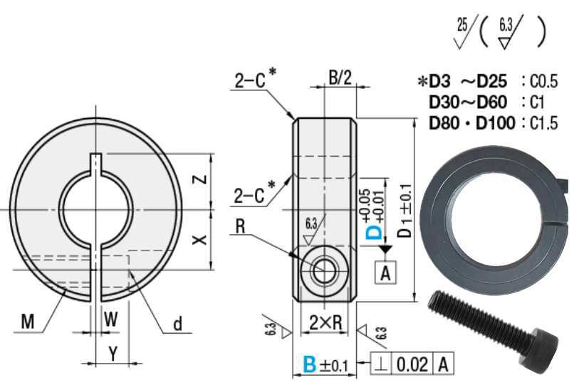 Stainless steel single opening type inner diameter 6 outer diameter 16 thickness 9, Stainless steel single ope...