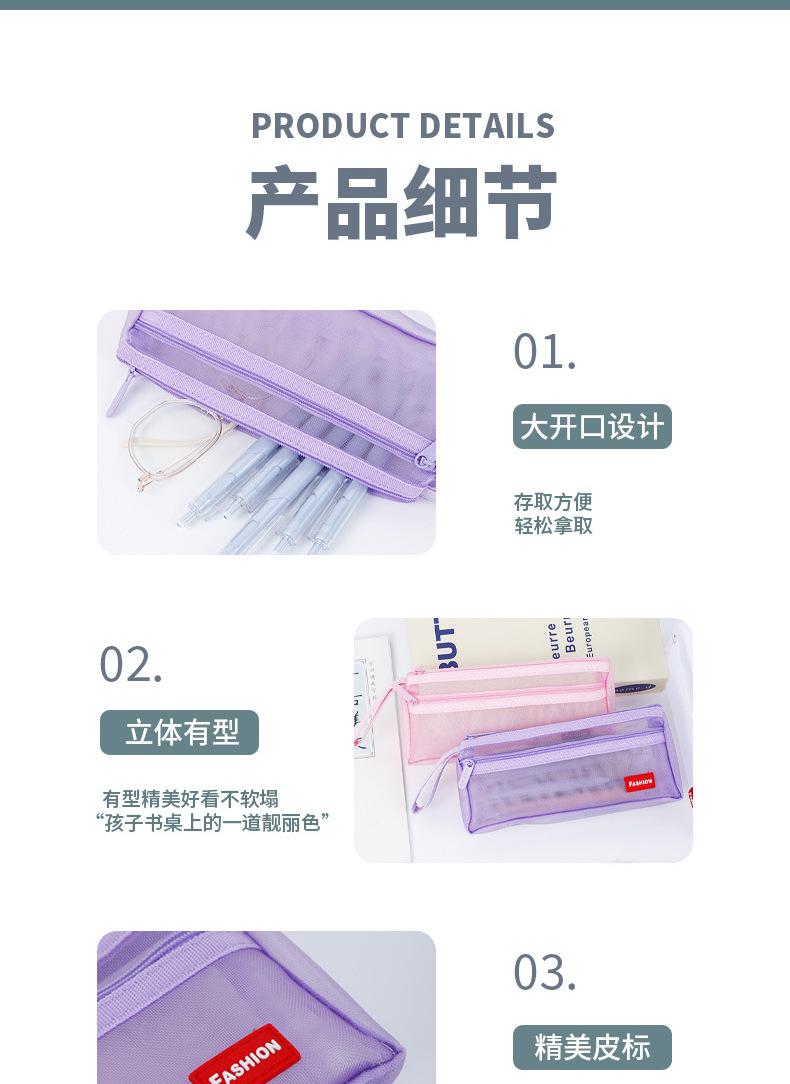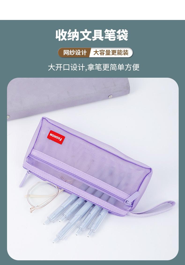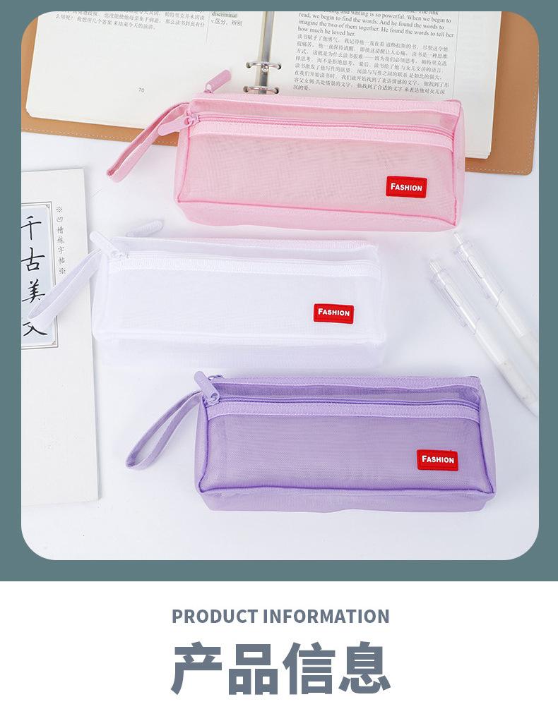 Estuche simple de malla transparente, bolsa de papelería triangular tridimensional, estuche de papelería de gran capacidad para estudiantes masculinos y femeninos, estuche para lápices al por mayor
