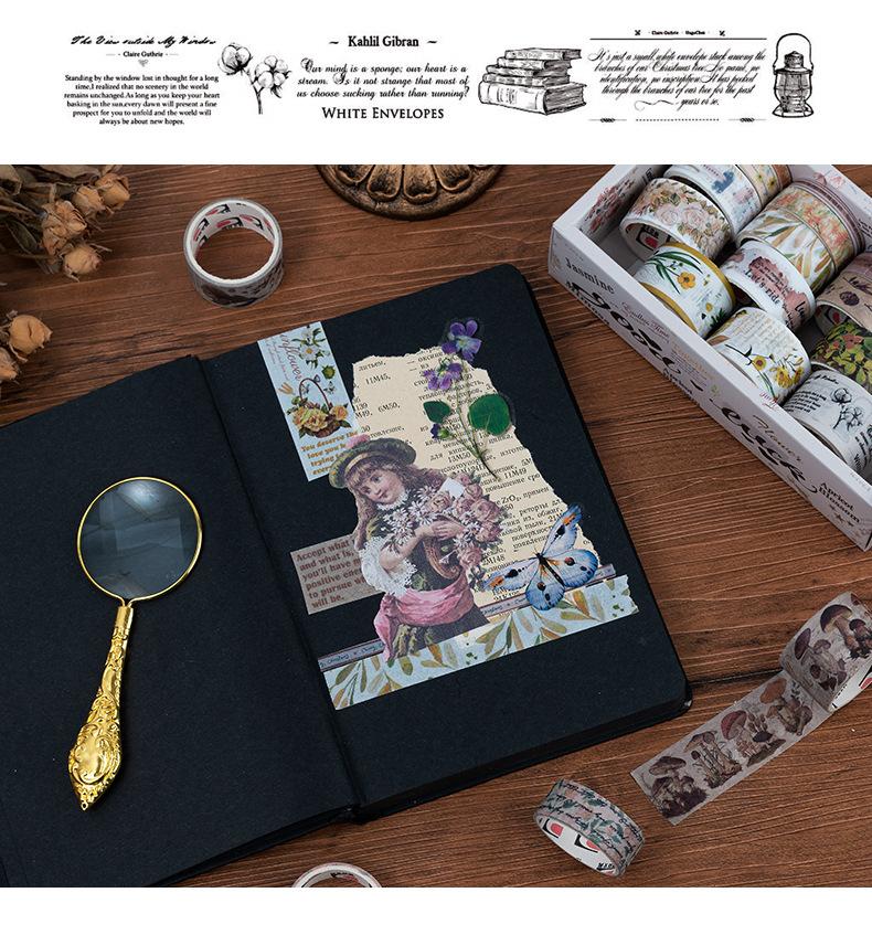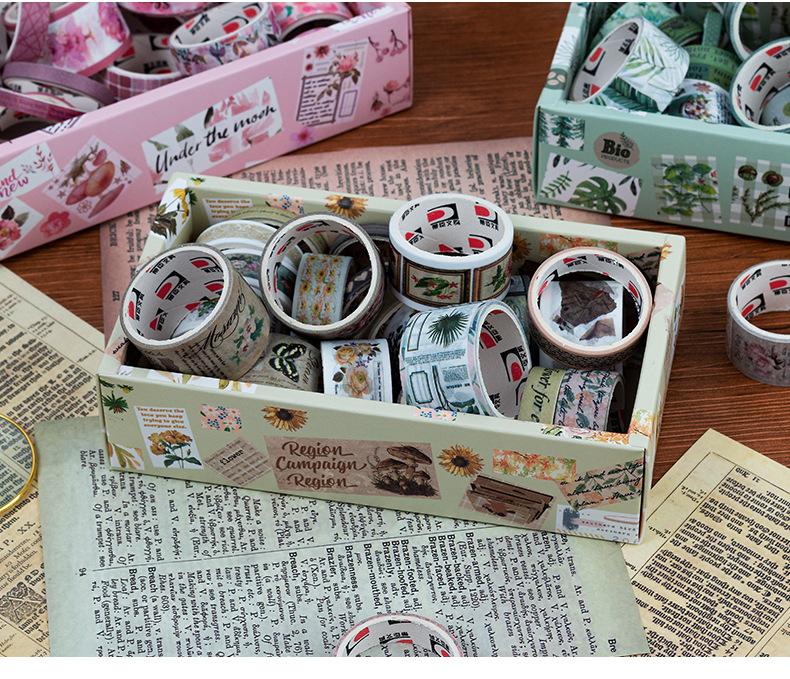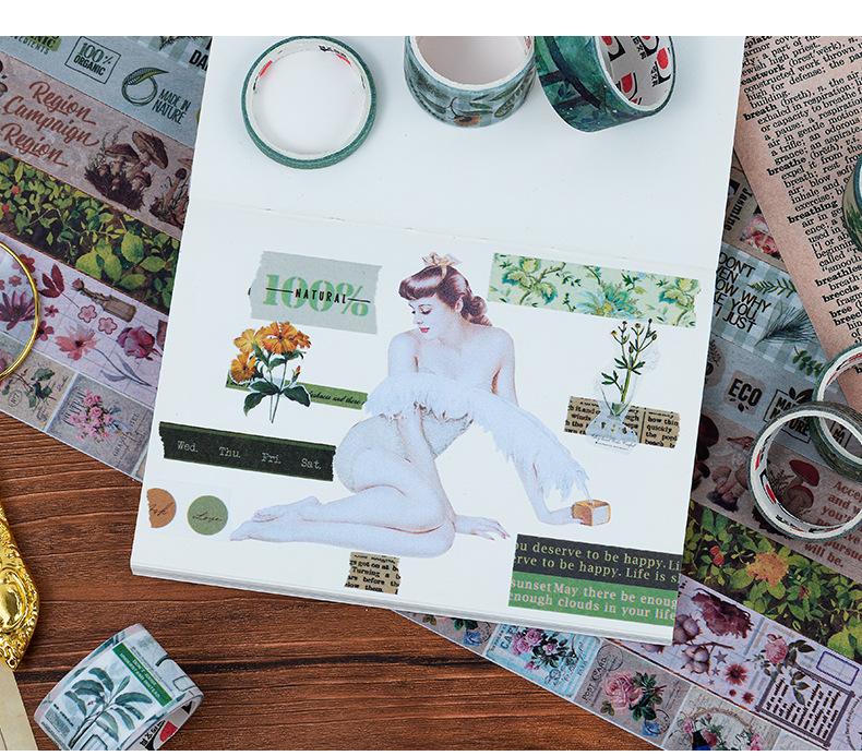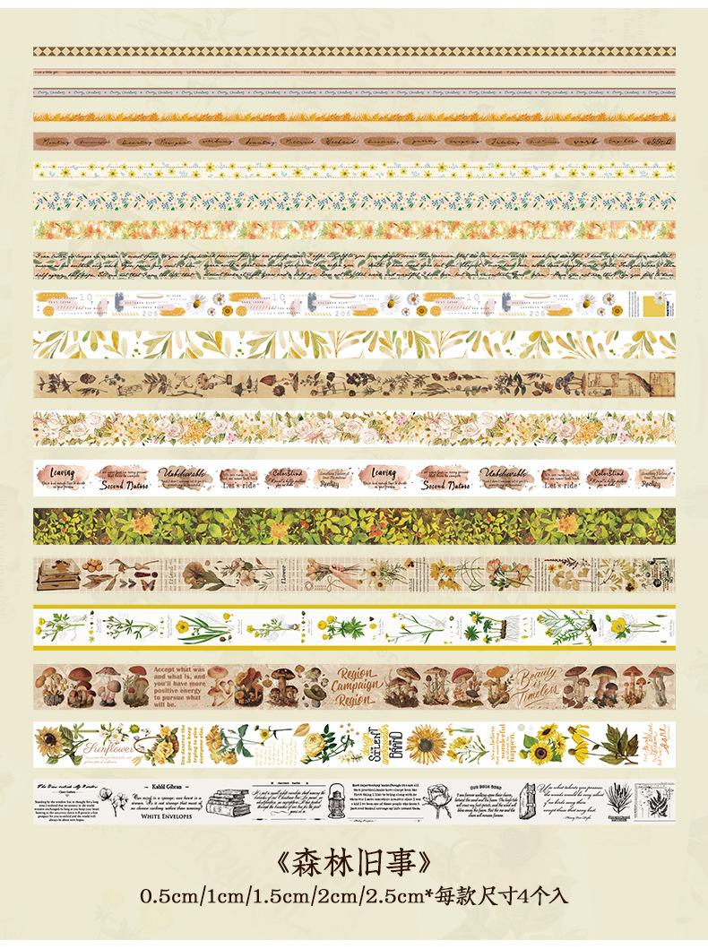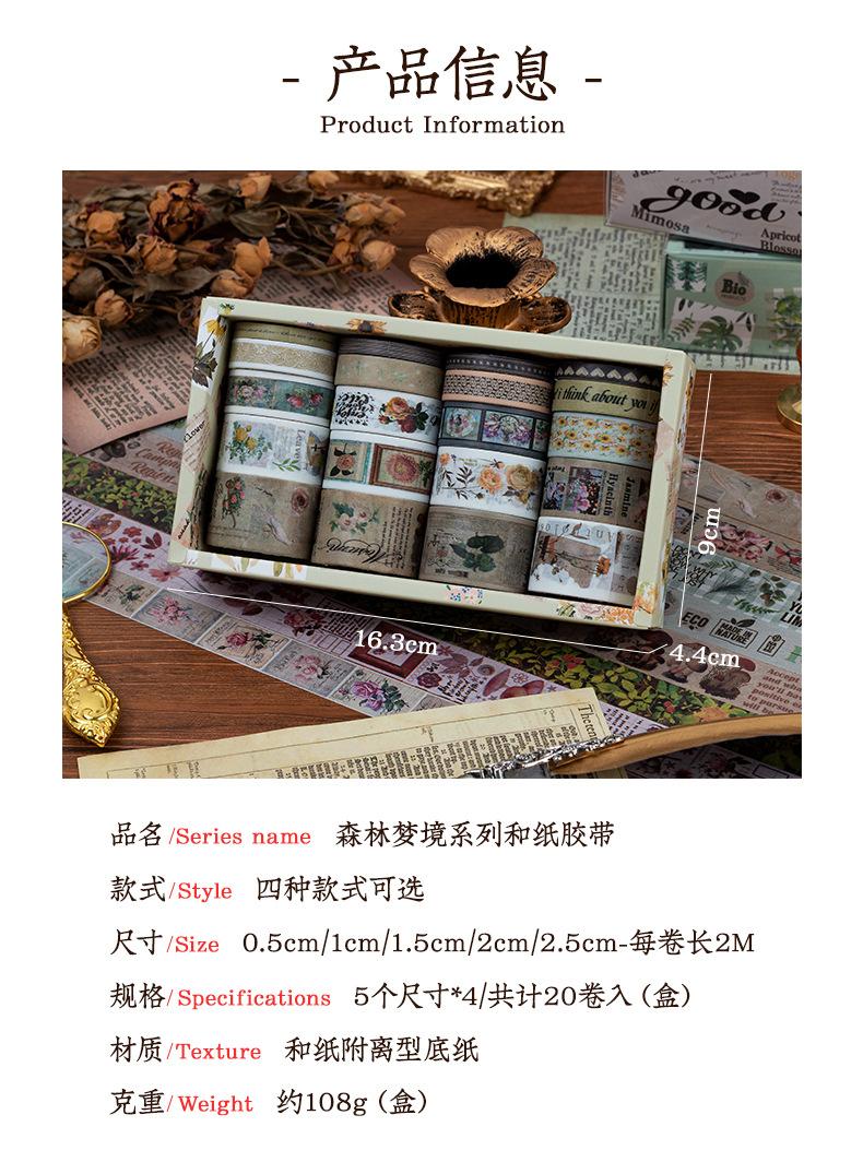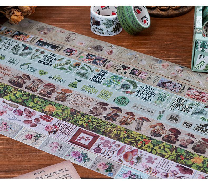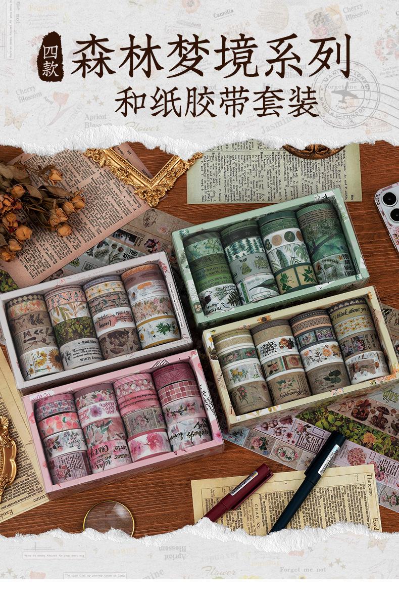 Caja de regalo con cinta de papel y cuenta de mano de la serie Forest Dream, ideal para manualidades, material decorativo de plantas retro, pegatinas de papelería