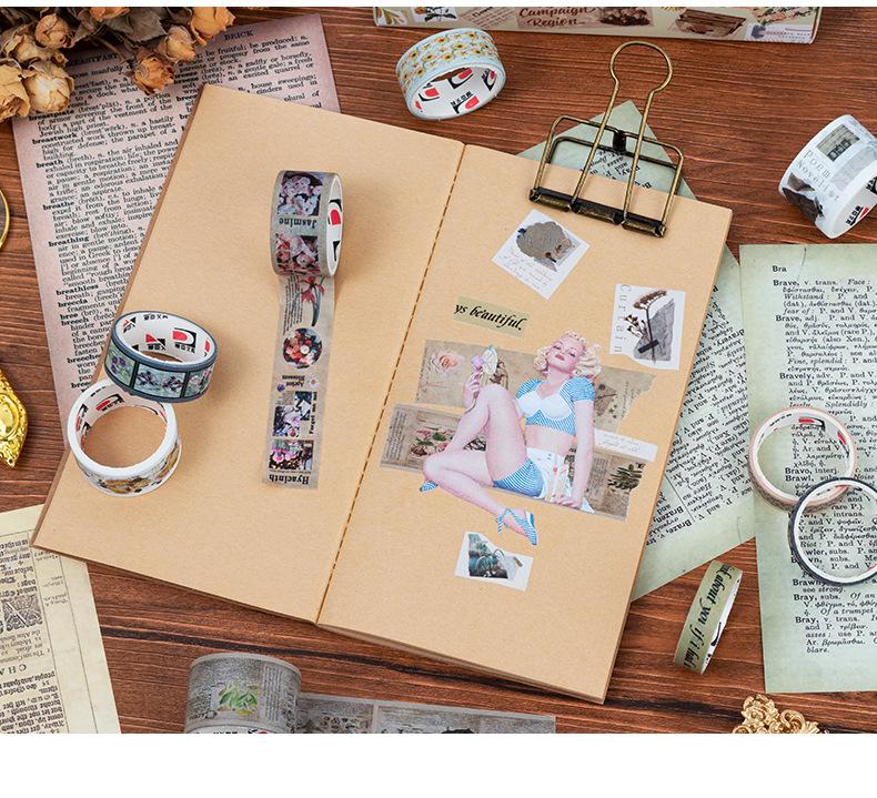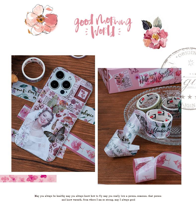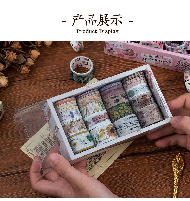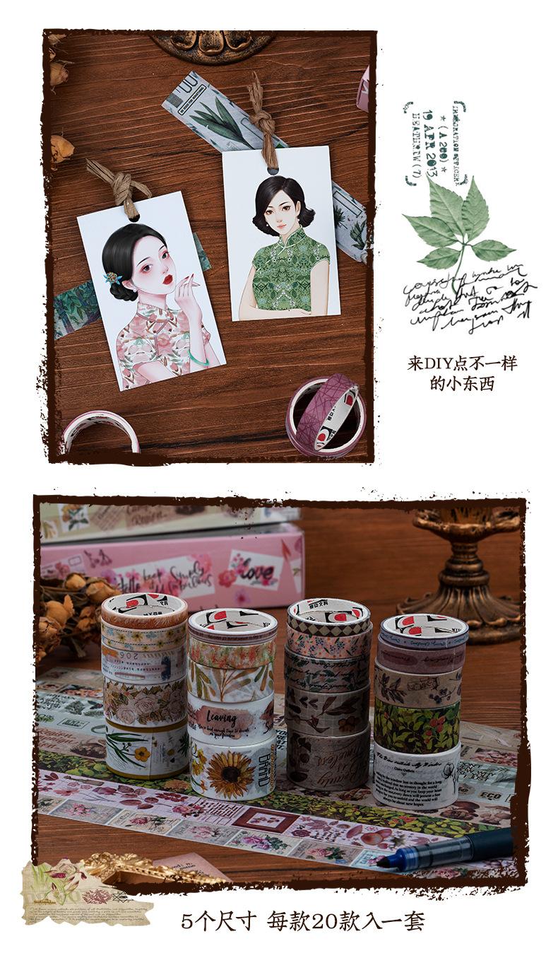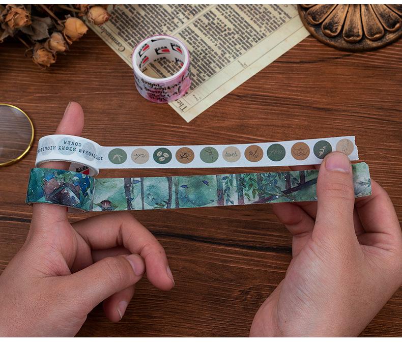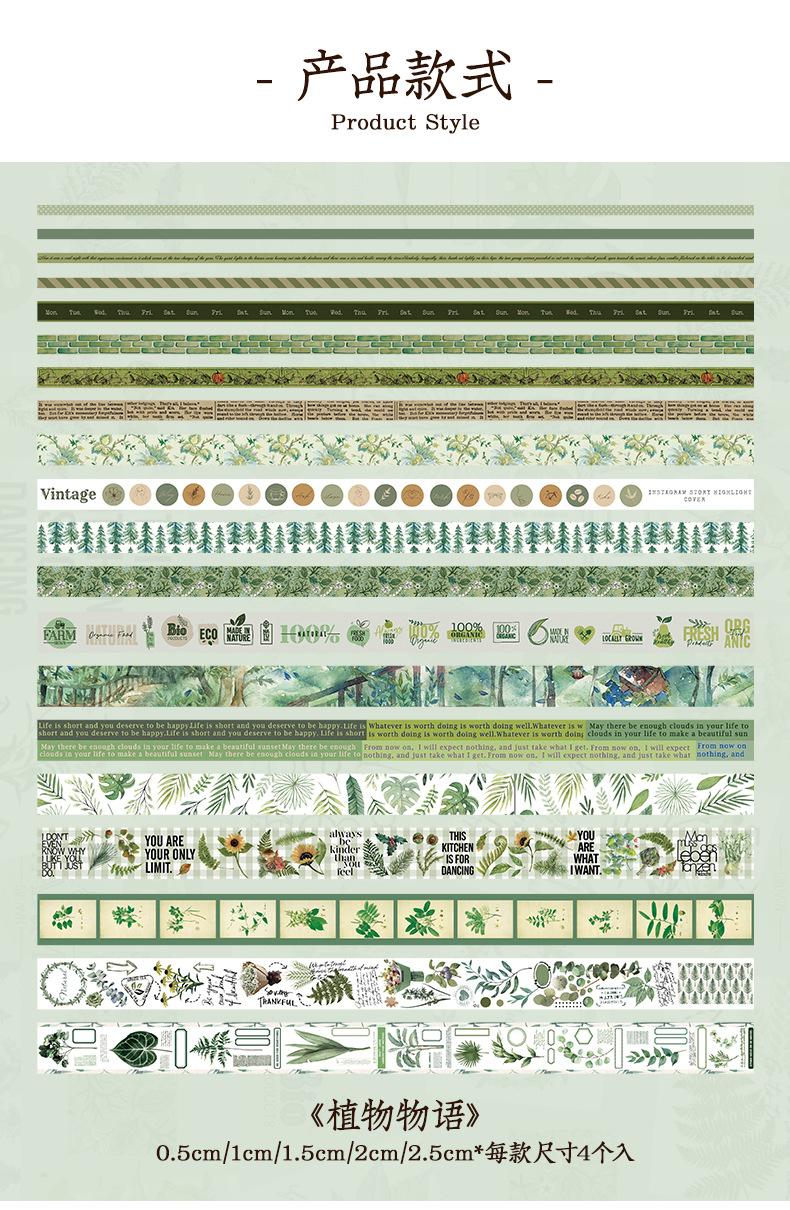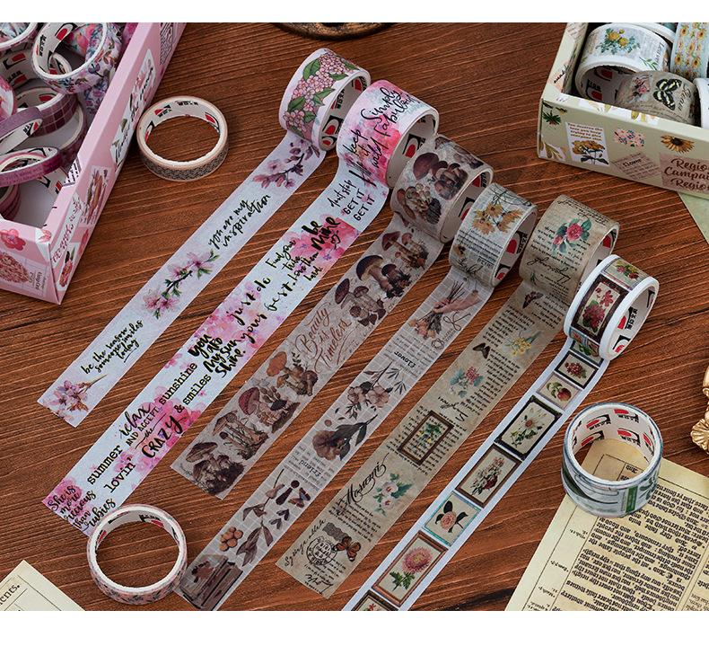 Caja de regalo con cinta de papel y cuenta de mano de la serie Forest Dream, ideal para manualidades, material decorativo de plantas retro, pegatinas de papelería
