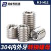 Suministro de fábrica de soportes de conversión de rosca de acero inoxidable 304, funda de rosca de tornillo, tuerca de dientes internos y externos de acero inoxidable