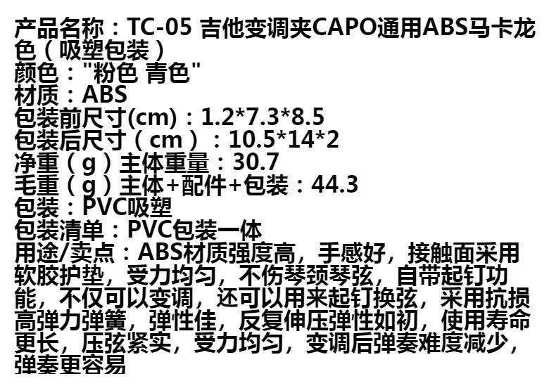Capo de Guitarra Capo Guitarra Eléctrica Guitarra Clásica Universal ABS Color Macaron Embalaje Blíster