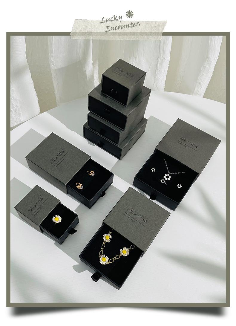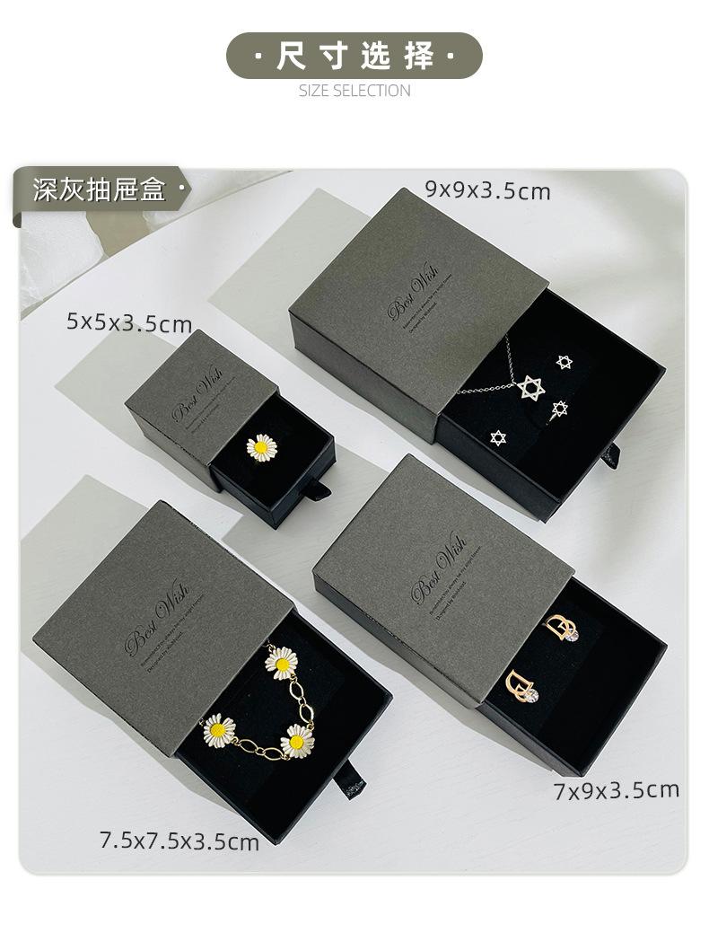 Caja de joyería extraíble de color negro hollín para venta de fábrica, caja de embalaje para pendientes, collares y cajones.