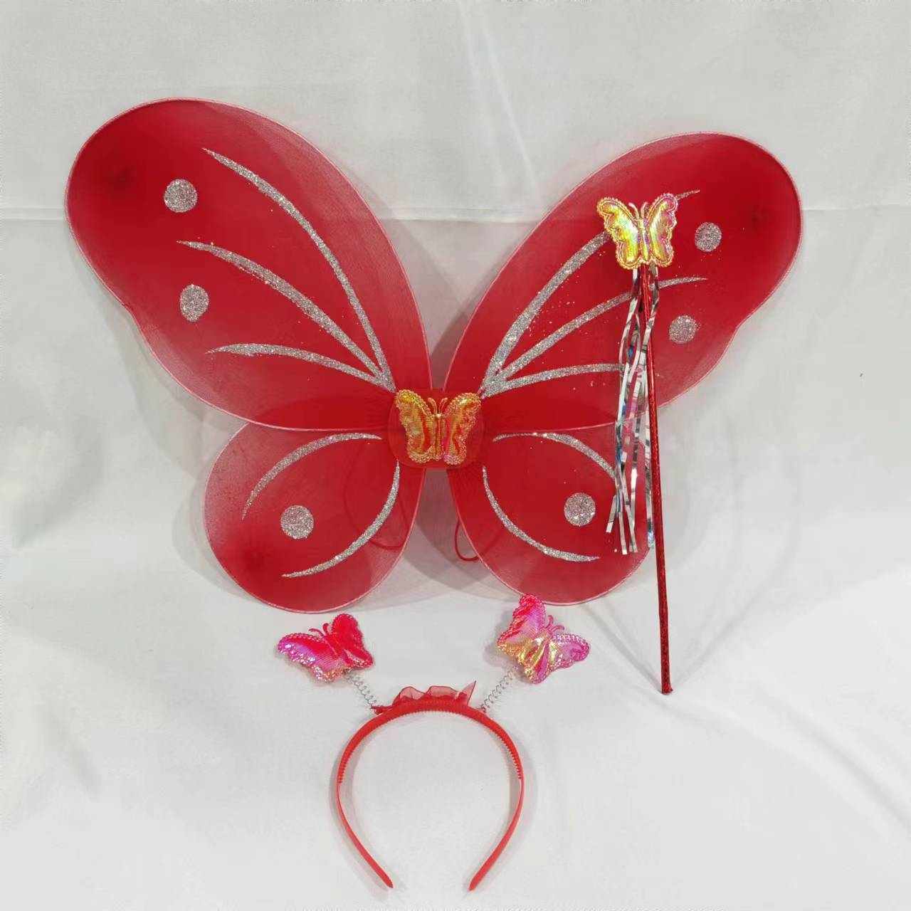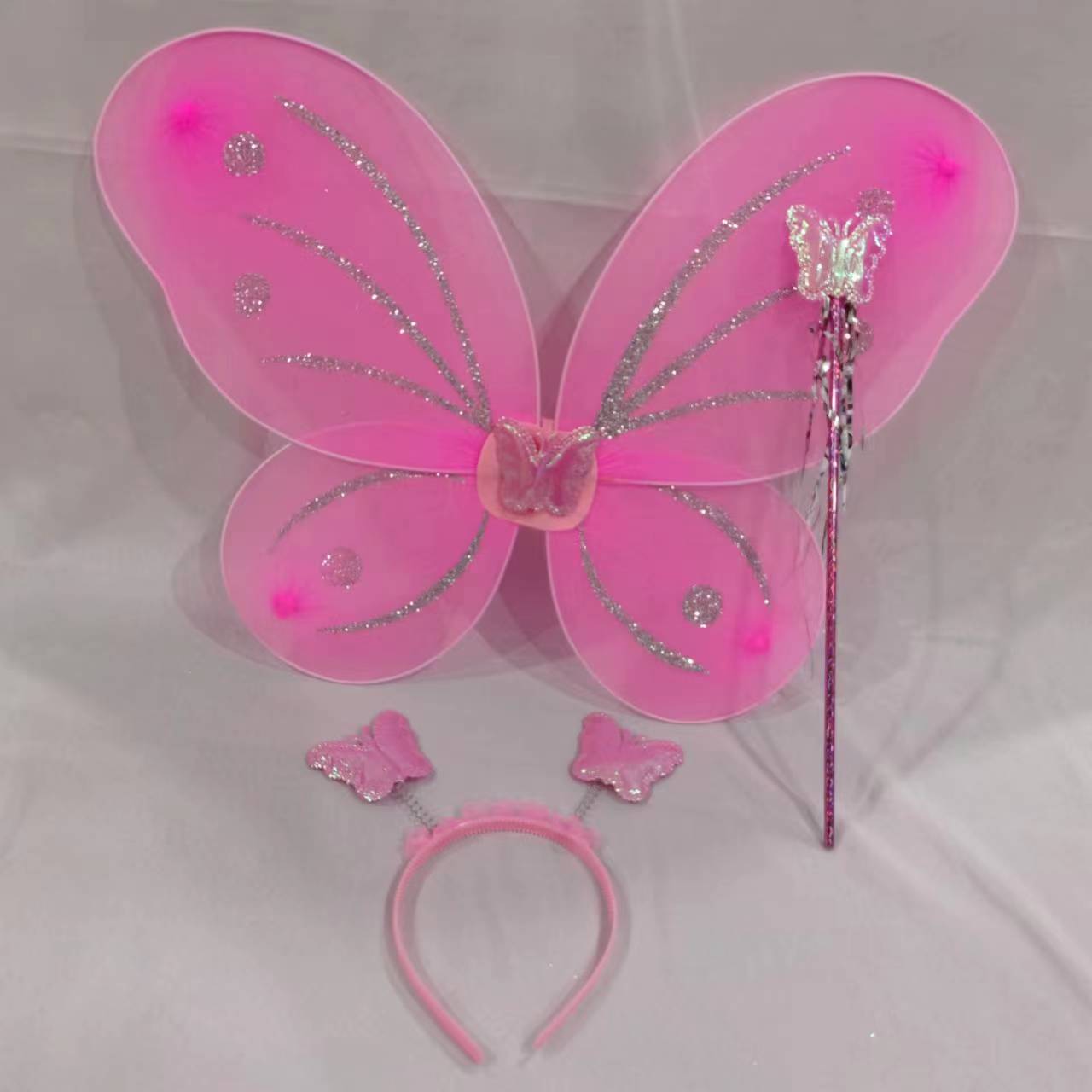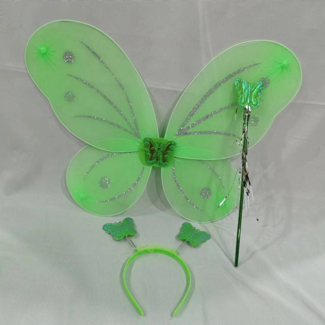 Nuevo disfraz de alas para niños, accesorios de actuación, alas de mariposa, tocado, varita mágica, tres piezas en stock