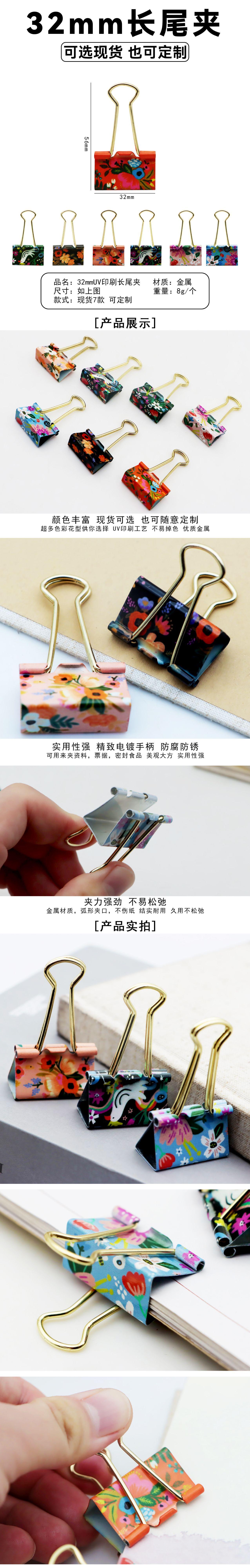 Clip de cola larga con impresión a color personalizado de fábrica, clip grande de cola de milano para papelería de oficina, clip de metal para billetes, clip de papel de prueba