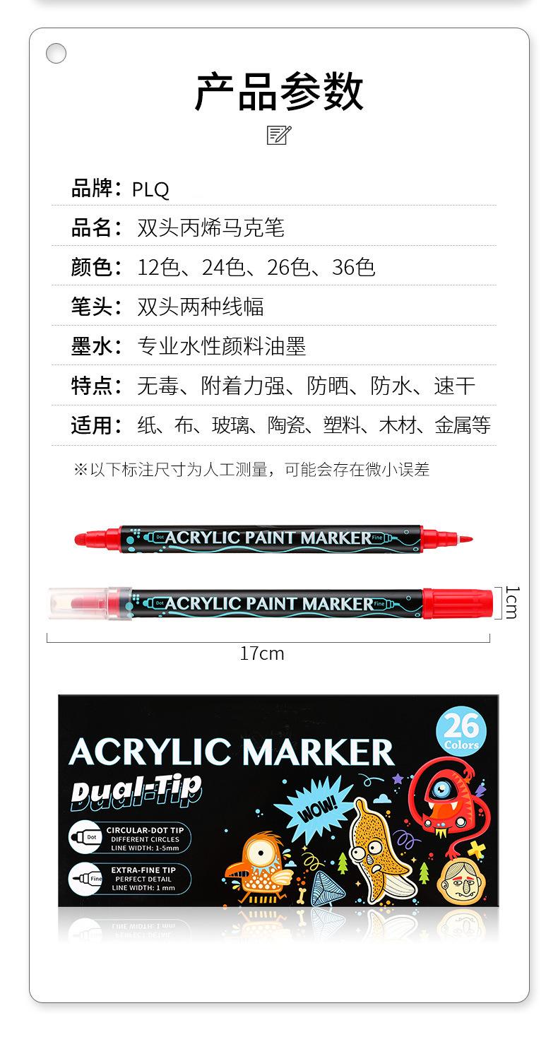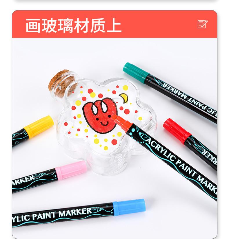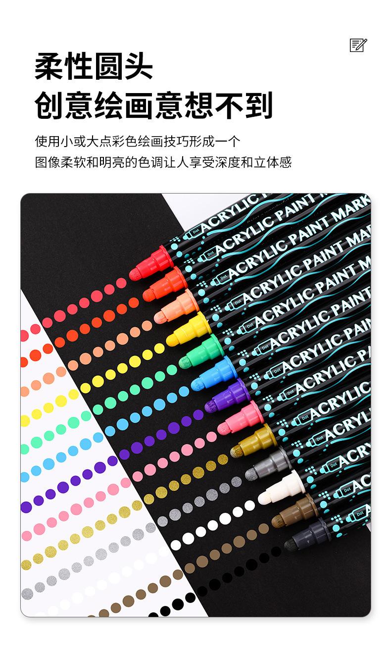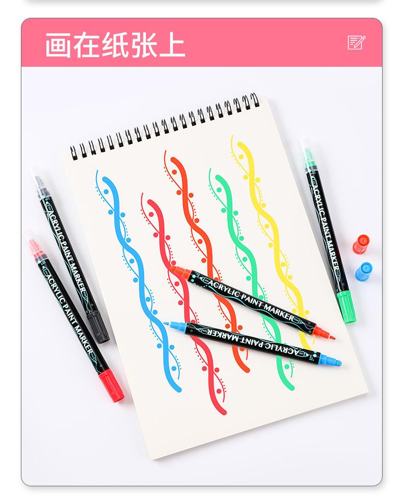 Marcador acrílico de doble punta transfronterizo impermeable de secado rápido a color apilable de punta redonda bolígrafo para garabatos arte pintura graffiti pluma de acuarela