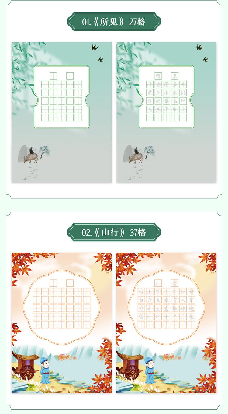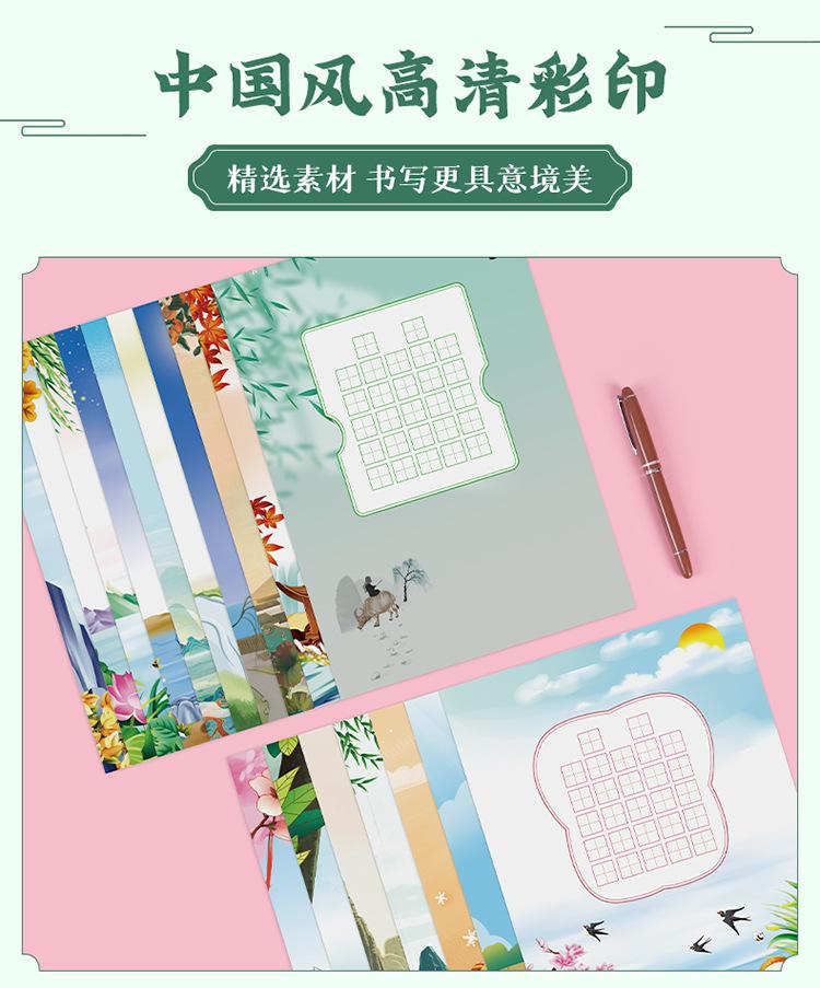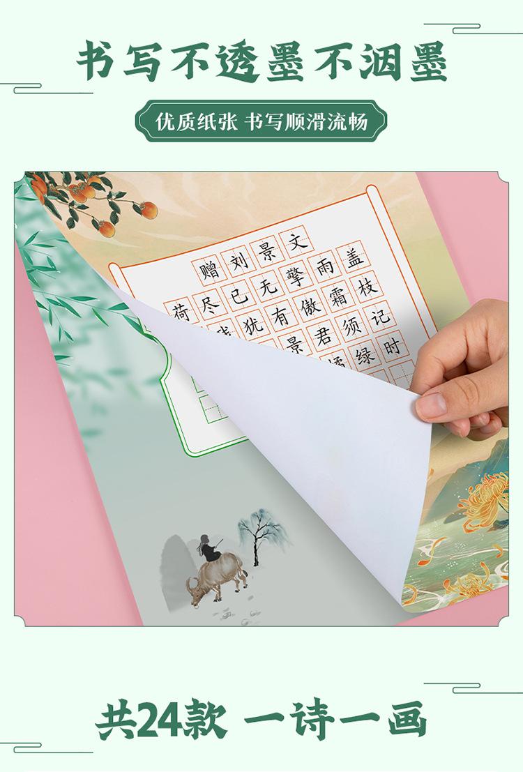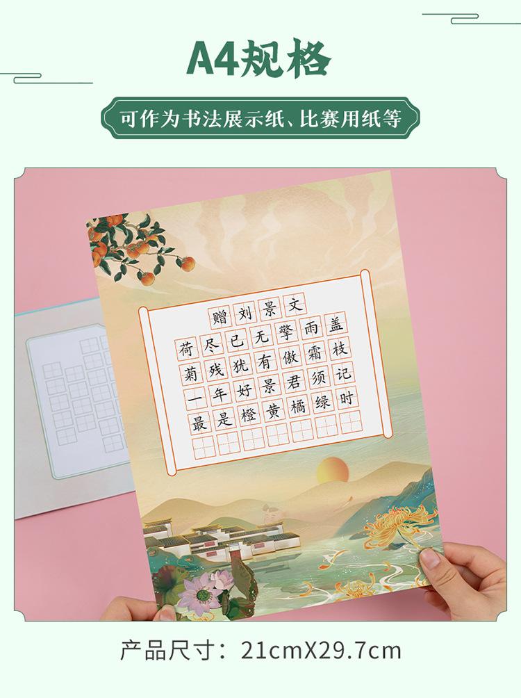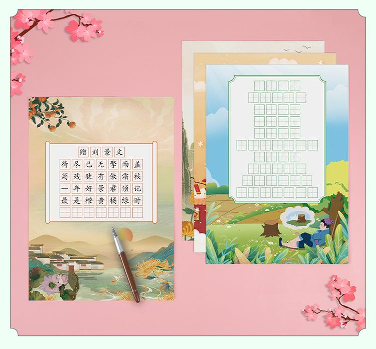 Papel de caligrafía A4, papel de exhibición, materiales didácticos de tercer grado que respaldan la poesía antigua, papel de caligrafía con pluma dura, papel de práctica, traje