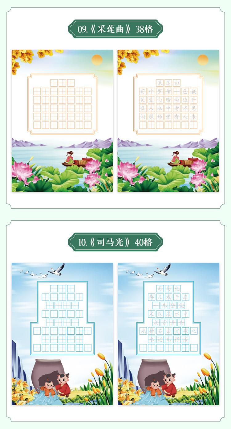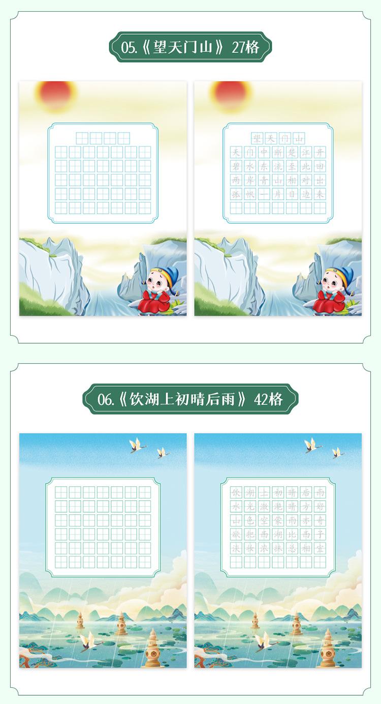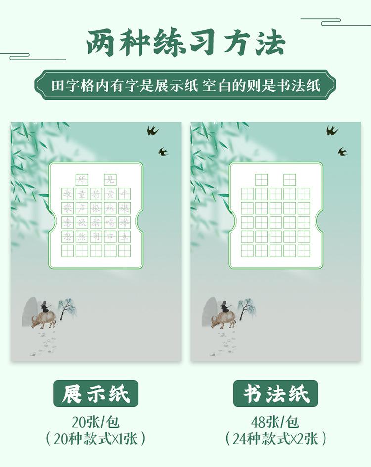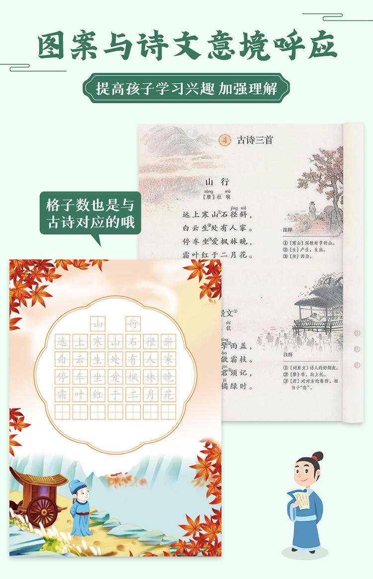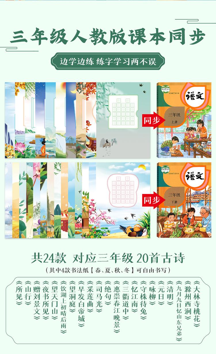 Papel de caligrafía A4, papel de exhibición, materiales didácticos de tercer grado que respaldan la poesía antigua, papel de caligrafía con pluma dura, papel de práctica, traje