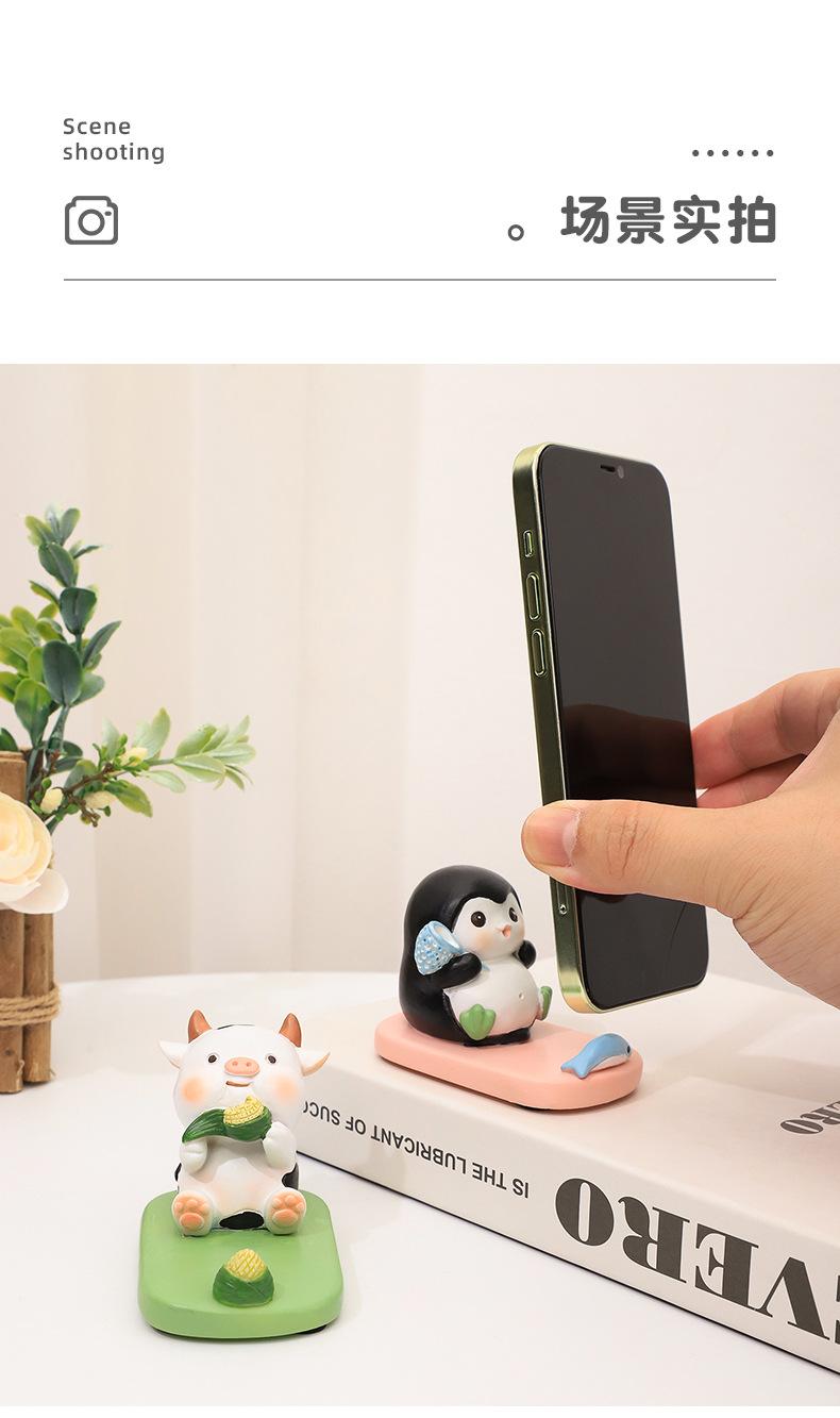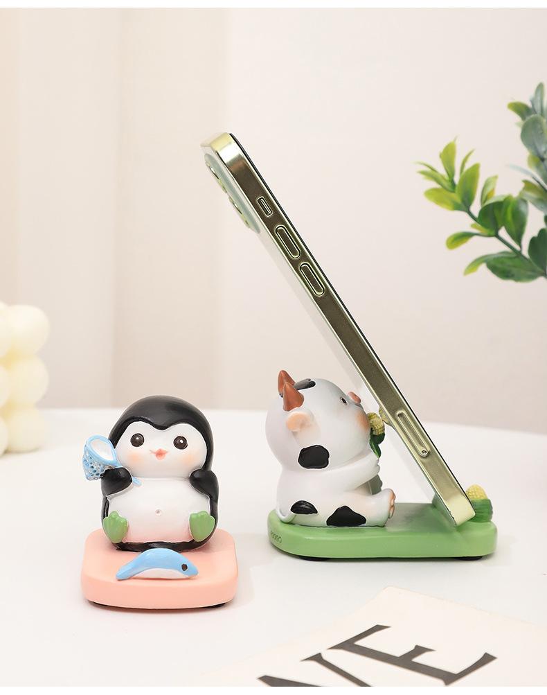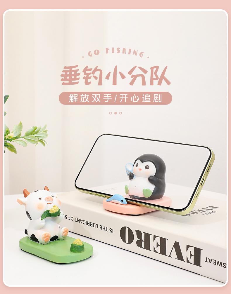 Regalo creativo para habitación infantil, decoración de escritorio, adornos de resina, dibujos animados de animales, pesca, soporte para teléfono móvil.
