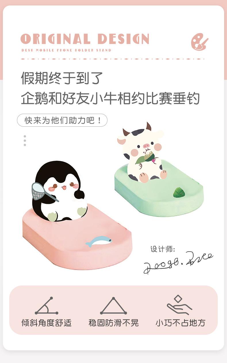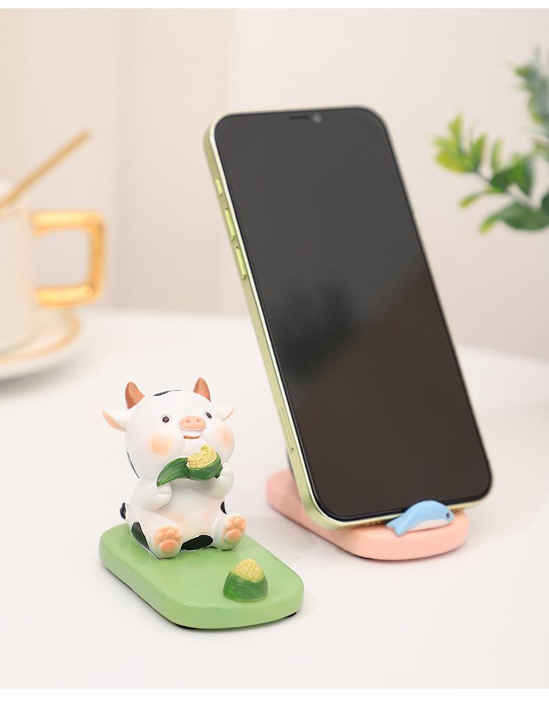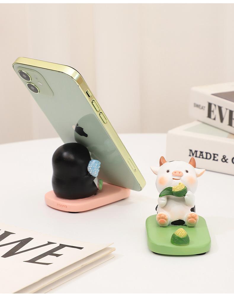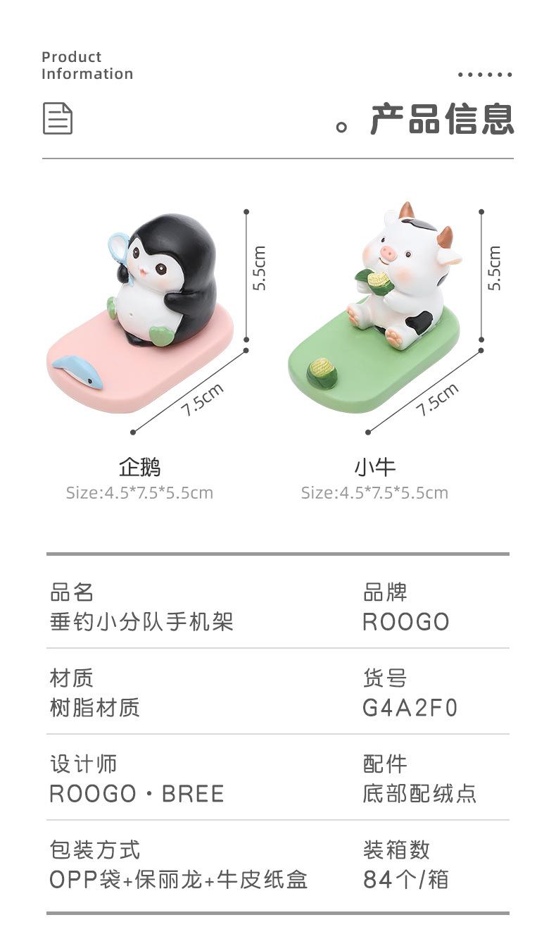 Regalo creativo para habitación infantil, decoración de escritorio, adornos de resina, dibujos animados de animales, pesca, soporte para teléfono móvil.