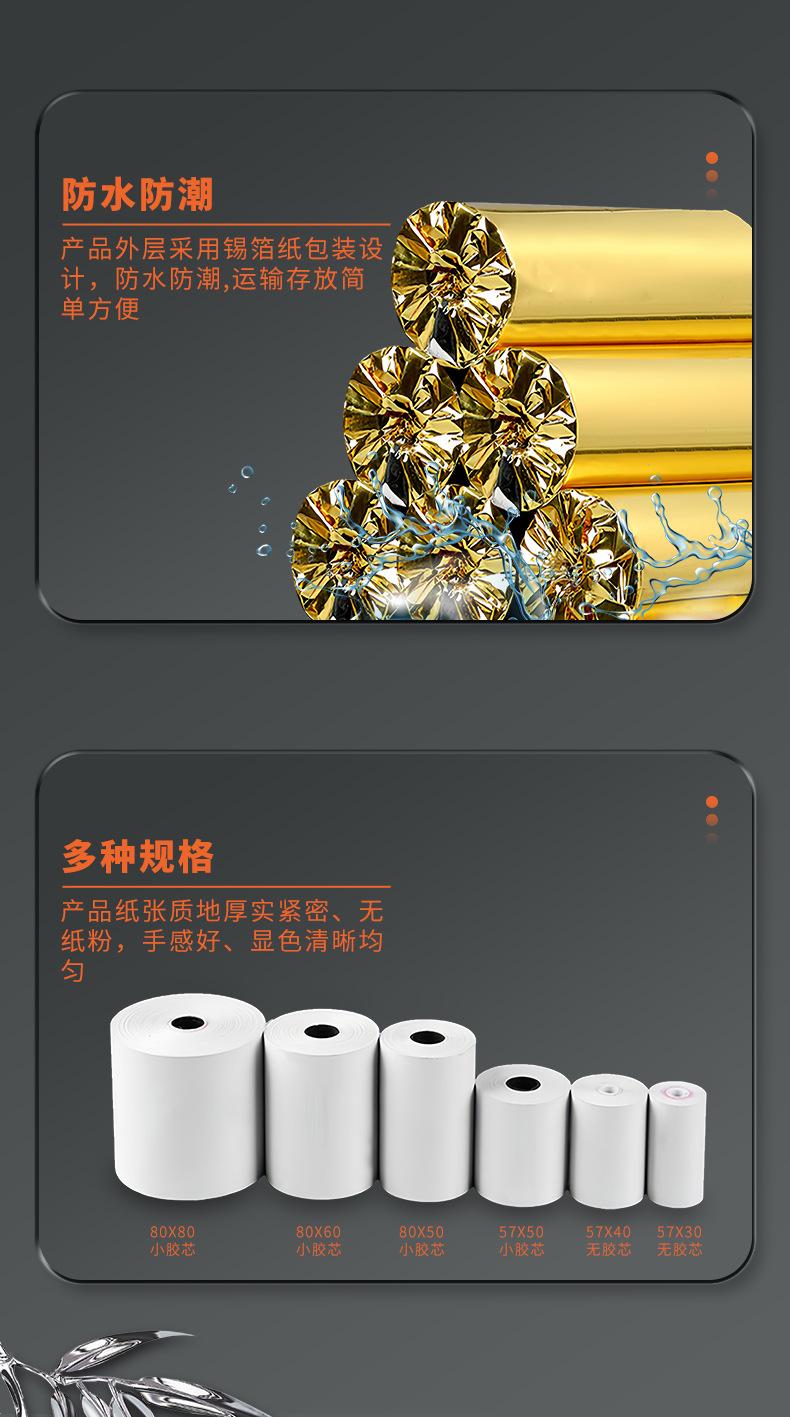 57x50x small tube core, 57x50x tubeless core, 57x50 single roll 30m