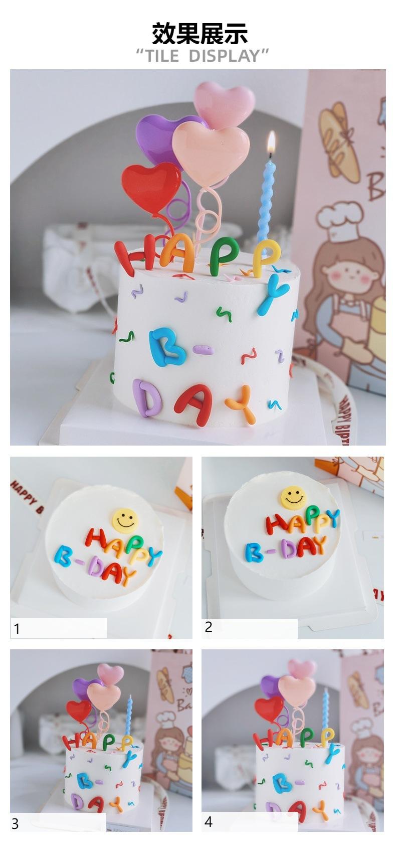 Adornos enchufables para decoración de tartas, globos, postres, tarjetas para hornear, venta al por mayor, con letras de cumpleaños de colores suaves y transfronterizos