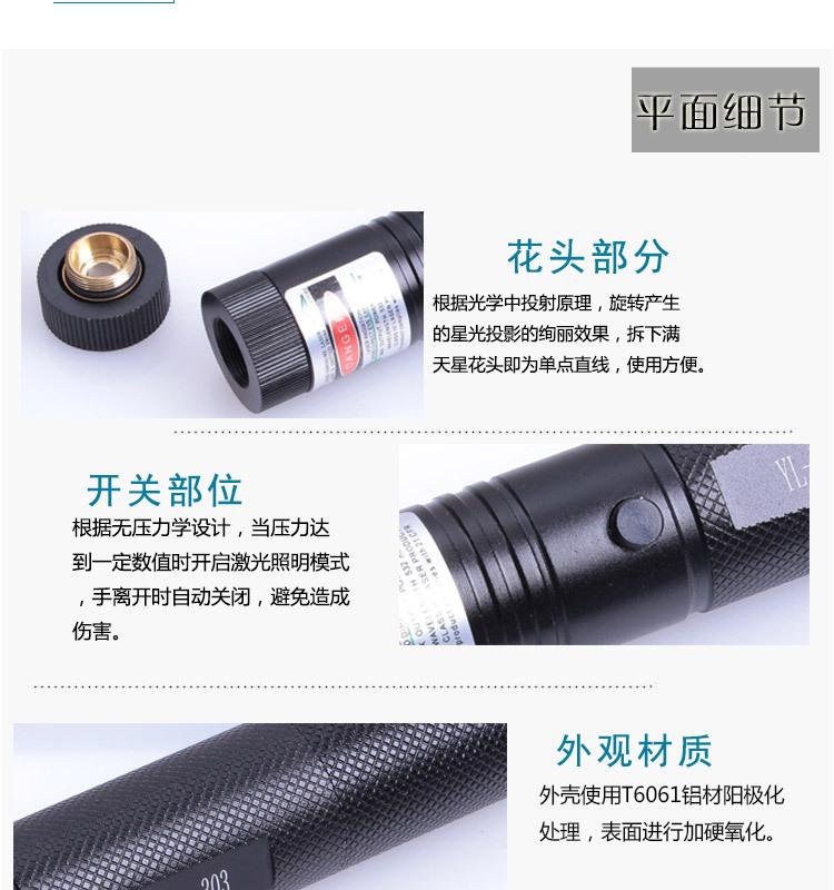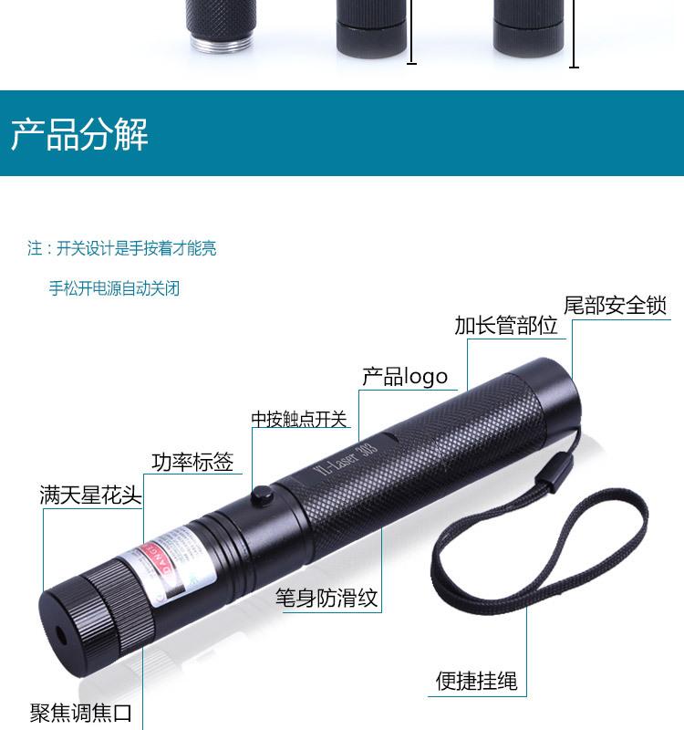 ◆ Viajeros por la naturaleza, exploradores ◆--- Se utiliza para iluminación exterior, señalización de objetivos distantes y envío de señales de socorro. Las características de este nuevo producto son: no afecta su rendimiento en entornos extremadamente fríos o calurosos; es impermeable, resistente a la humedad, absorbente del sudor y del agua, y resistente al desgaste, lo que lo hace especialmente adecuado para uso en exteriores. La potencia del láser para este propósito suele estar entre 30 y 150 mW.