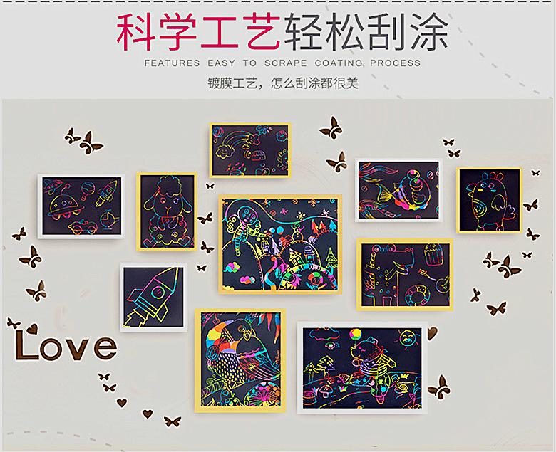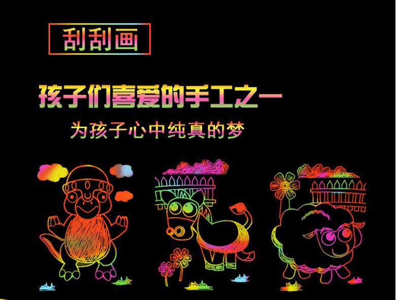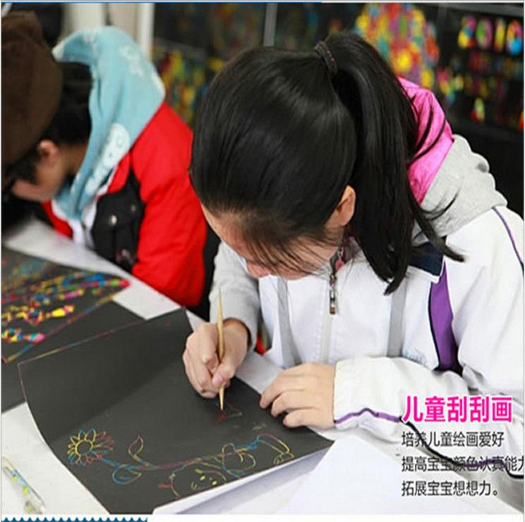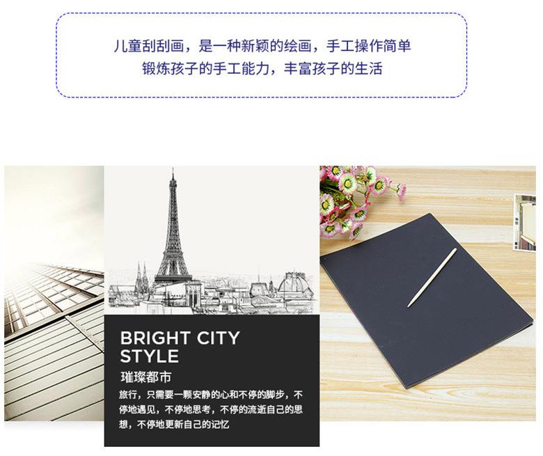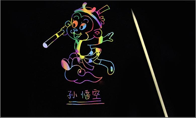 Papel para Rascar Colorido Transfronterizo DIY Creativo para Niños Pintura para Rascar con Pluma de Bambú Escena Nocturna Venta al por Mayor Grafiti