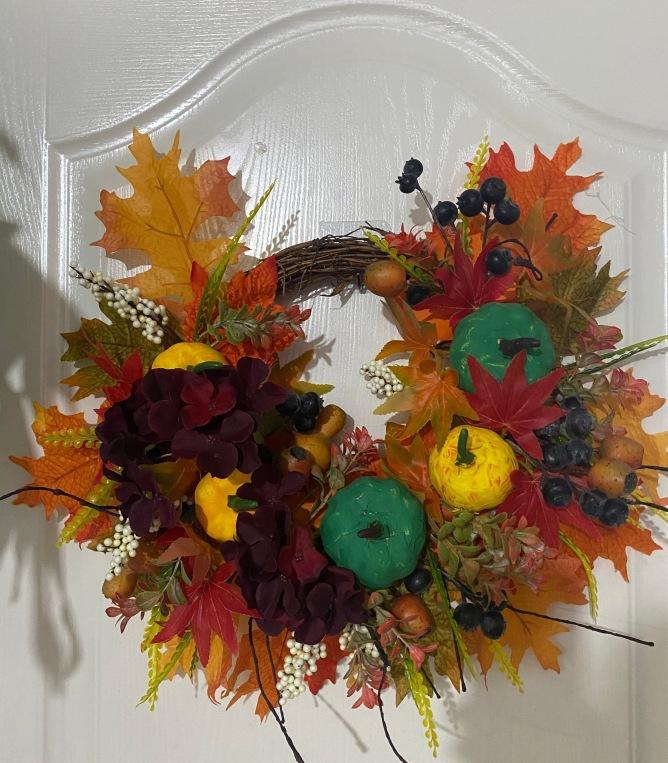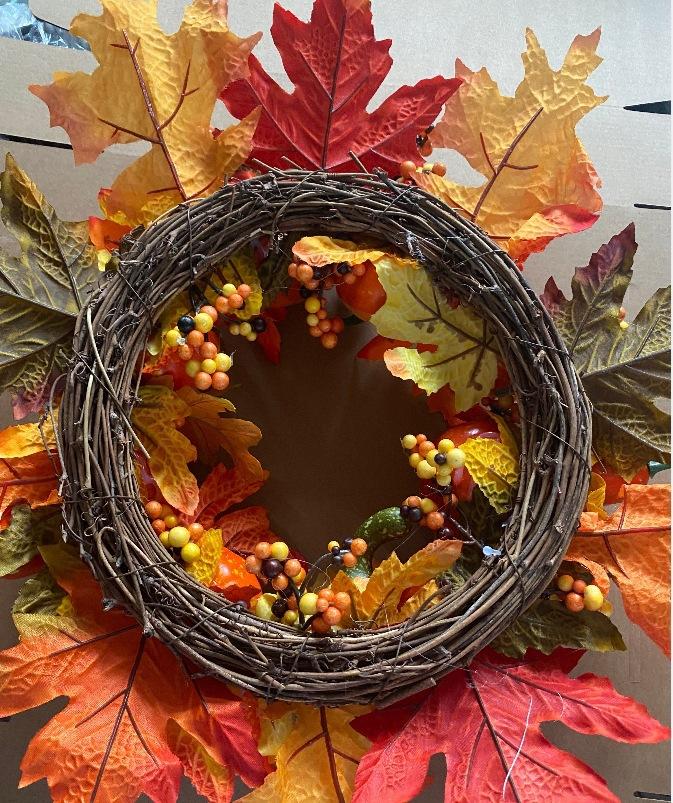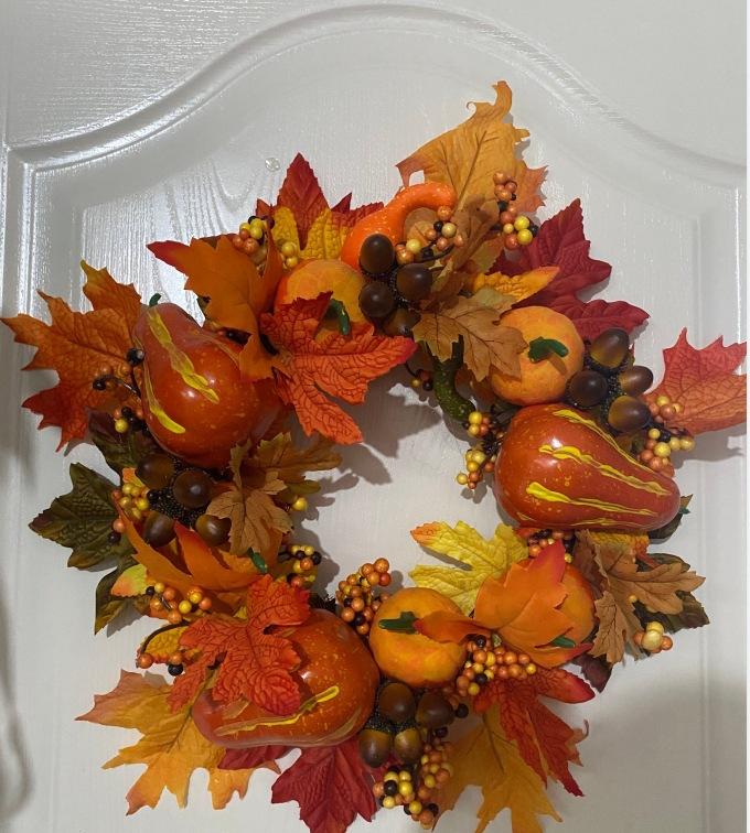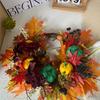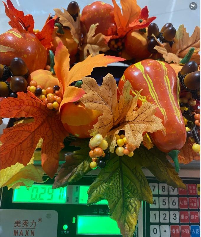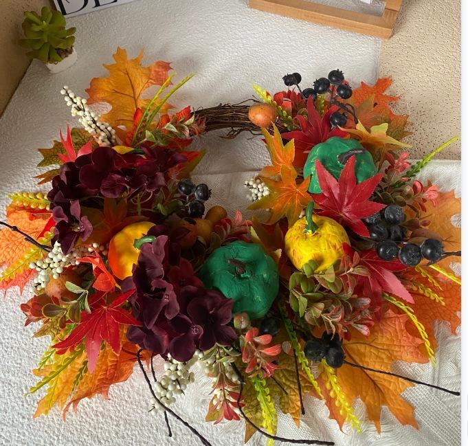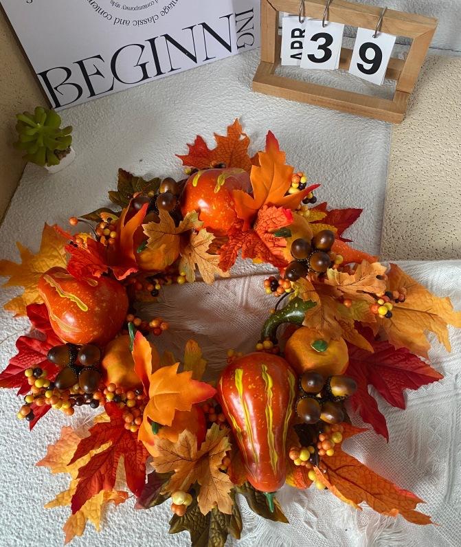 Corona de hojas de arce de calabaza de color simulado transfronteriza otoño Halloween cosecha decoración del hogar colgante de puerta