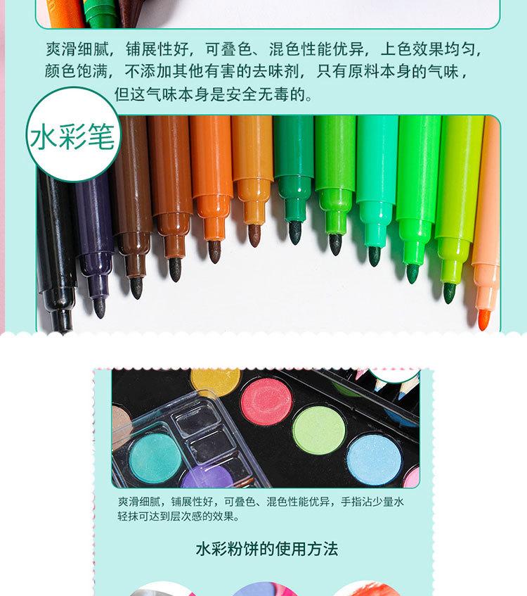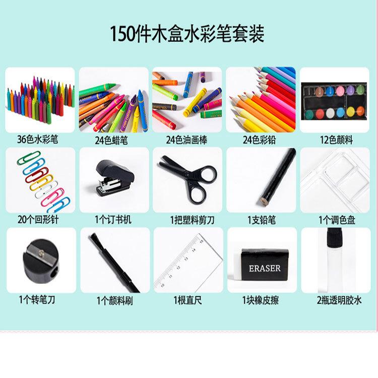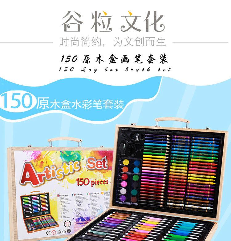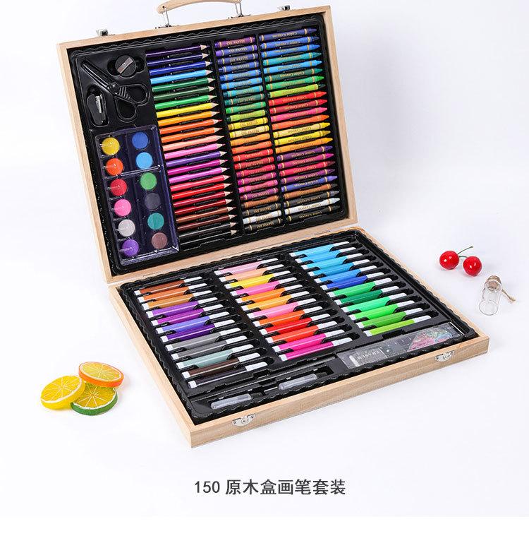 Caja de regalo de madera de 180 piezas para niños, pincel, pintura artística, set de pintura, aprendizaje de pintura, pluma de acuarela, set DIY