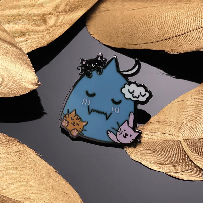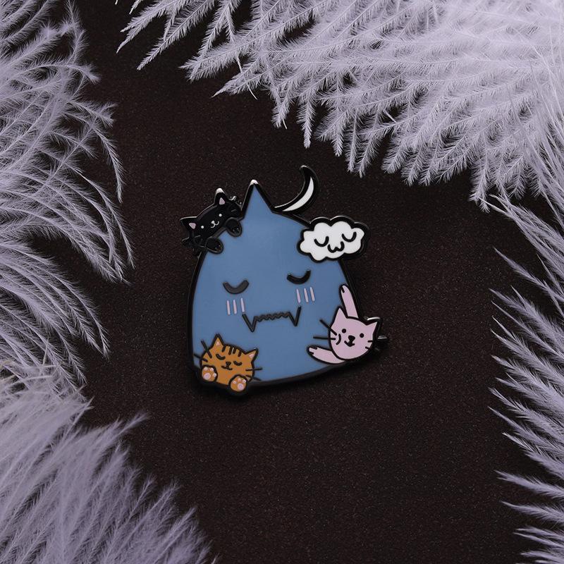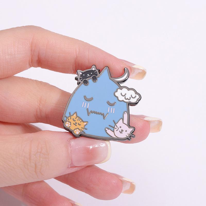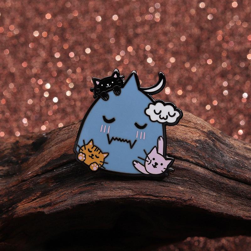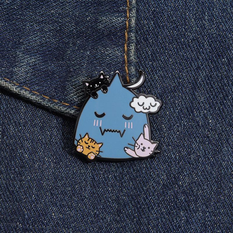 Broche de metal creativo con forma de gatito azul, accesorios, insignia de esmalte periférico de anime de Alquimista de acero de dibujos animados