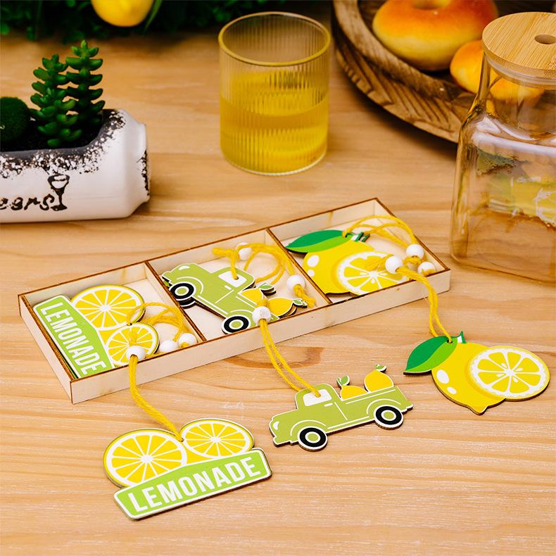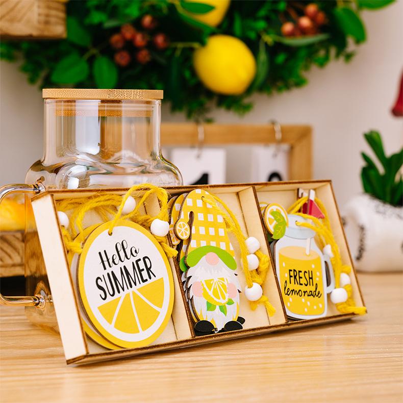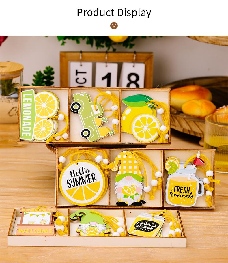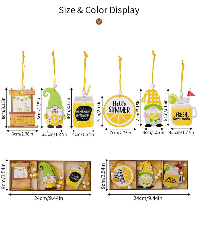 Haube Nueva Decoración de Verano Limón 3 Caja Colgante de Madera Enano Carrito Colgante de Madera de Verano