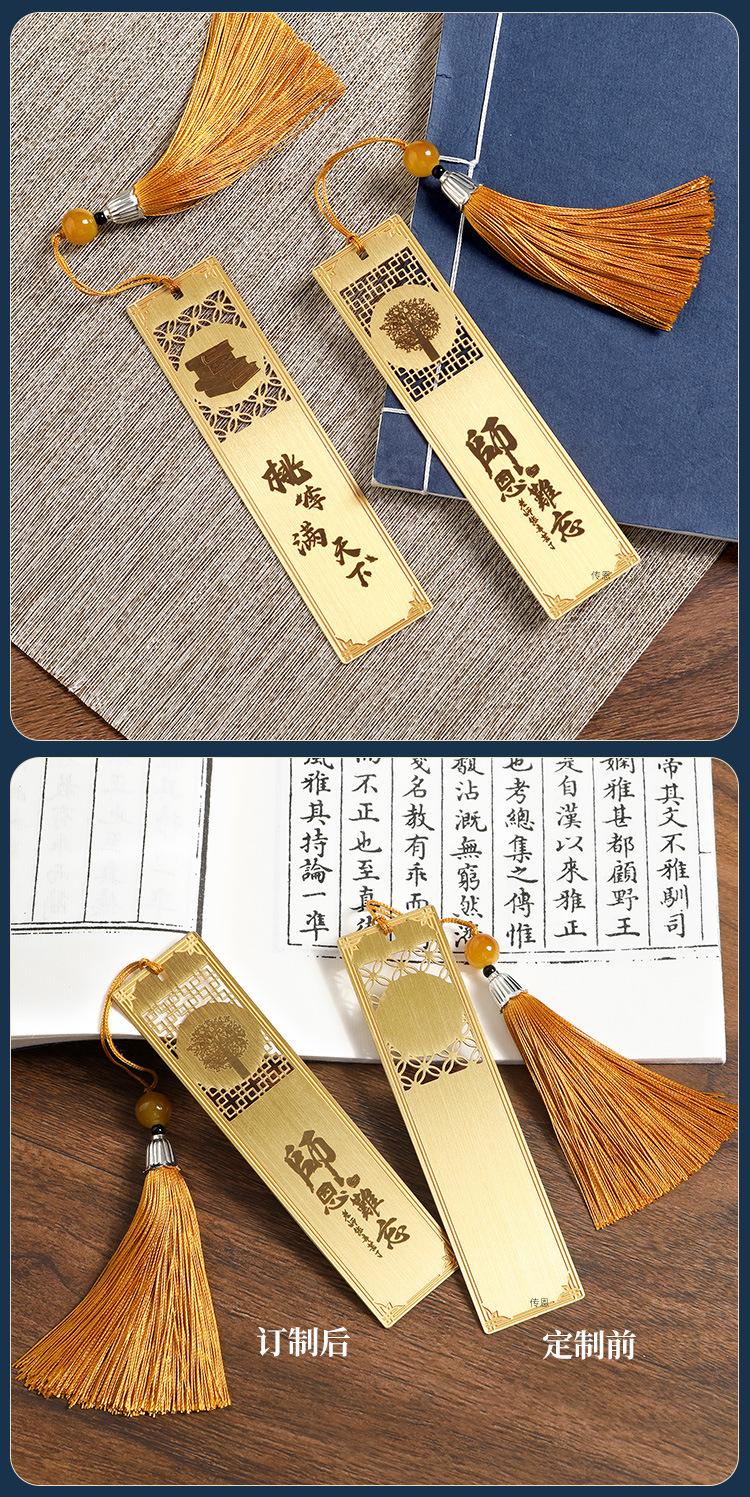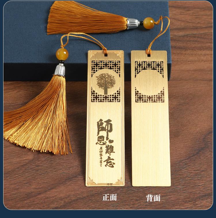 Marcapáginas de metal hueco con corrosión de latón, regalo del Día del Maestro, regalo de Wen Chuang, marcapáginas grabado