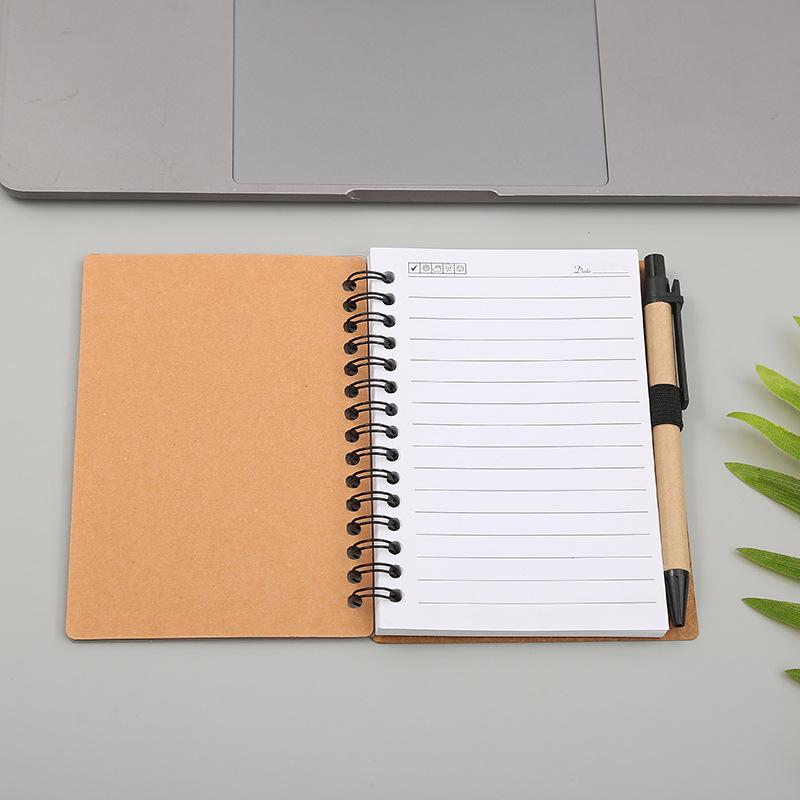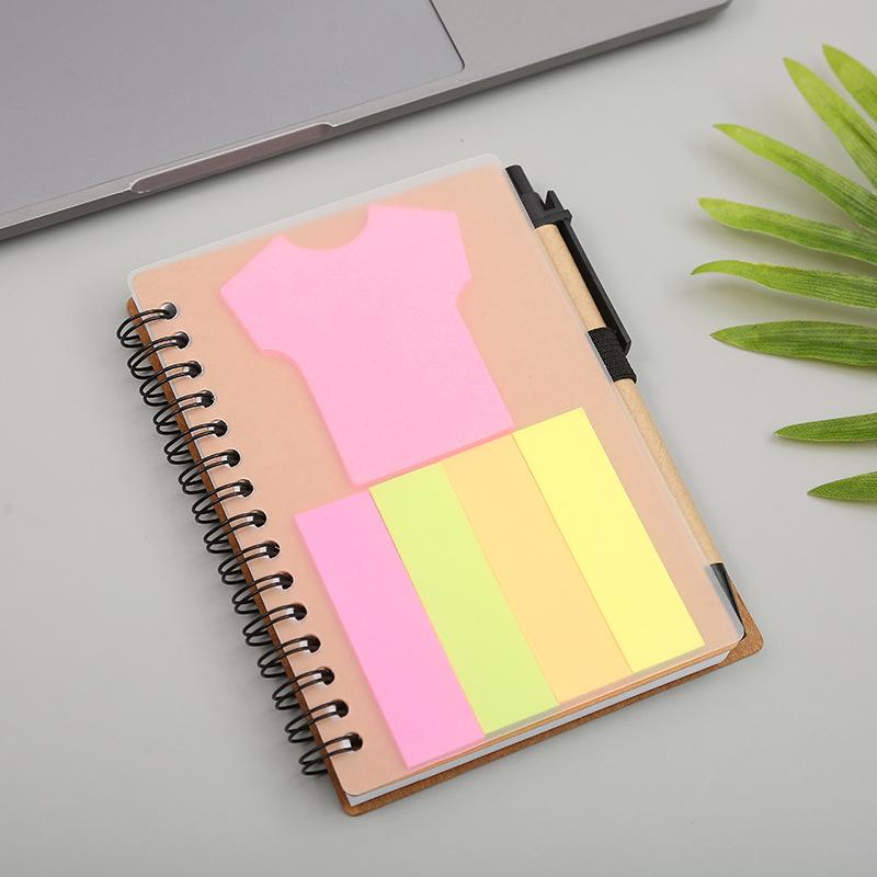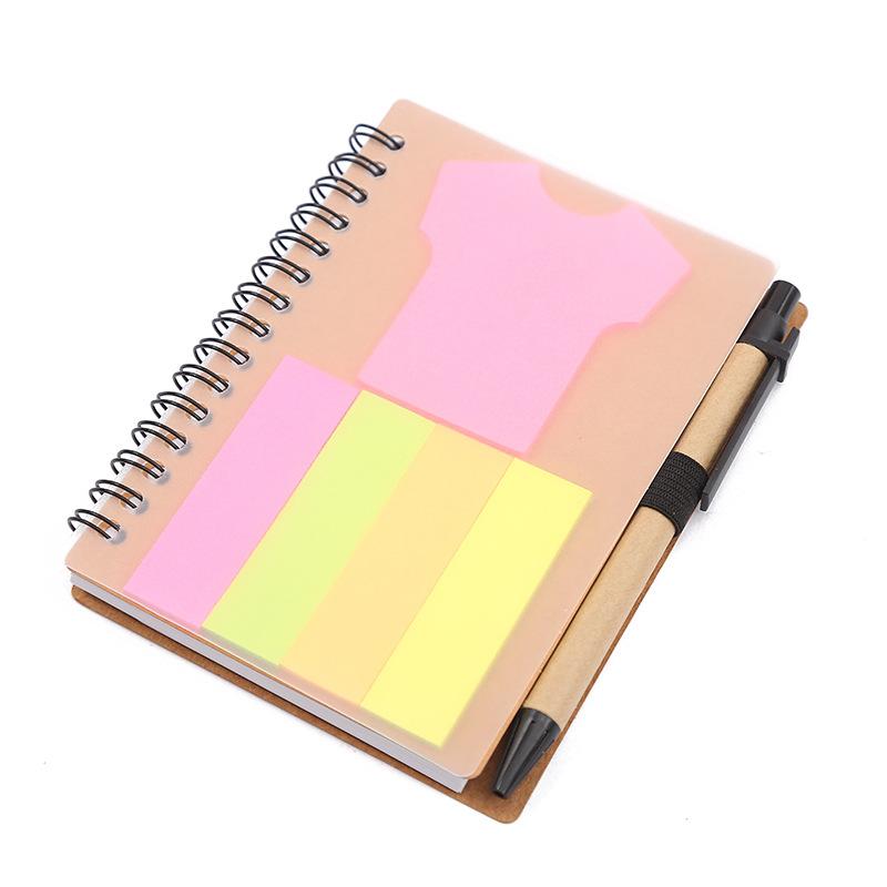 Libreta de notas adhesivas transparente con espiral y logotipo, libreta creativa con bolígrafo, cuaderno de papel kraft.