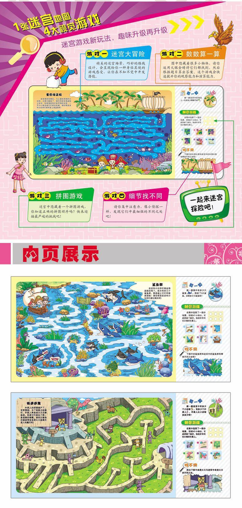 Libro de juegos visuales para niños: laberinto de aventuras, 6 libros completos, libro de entrenamiento de la capacidad de pensamiento lógico y concentración para niños