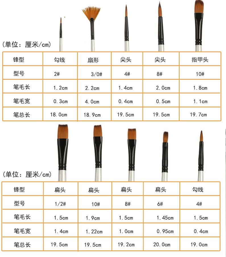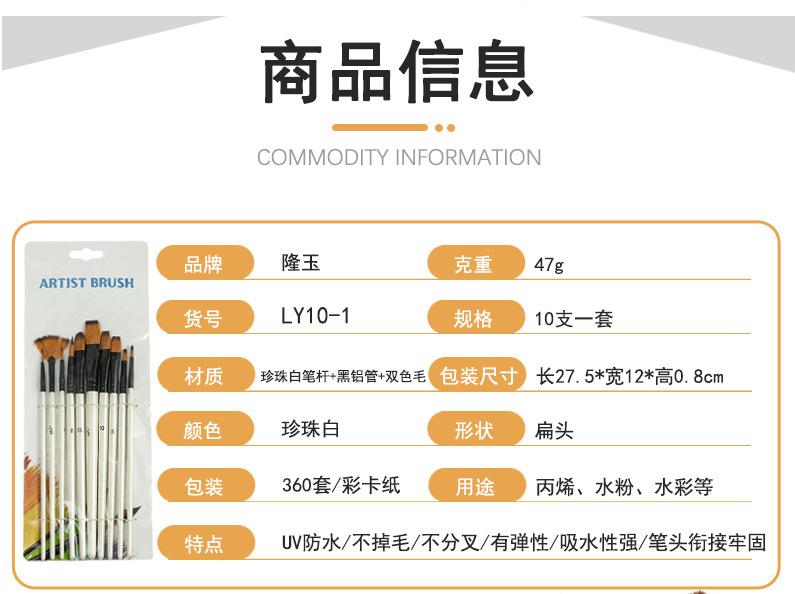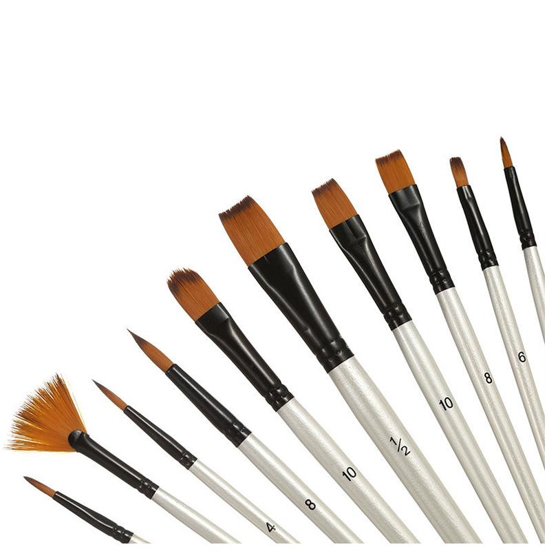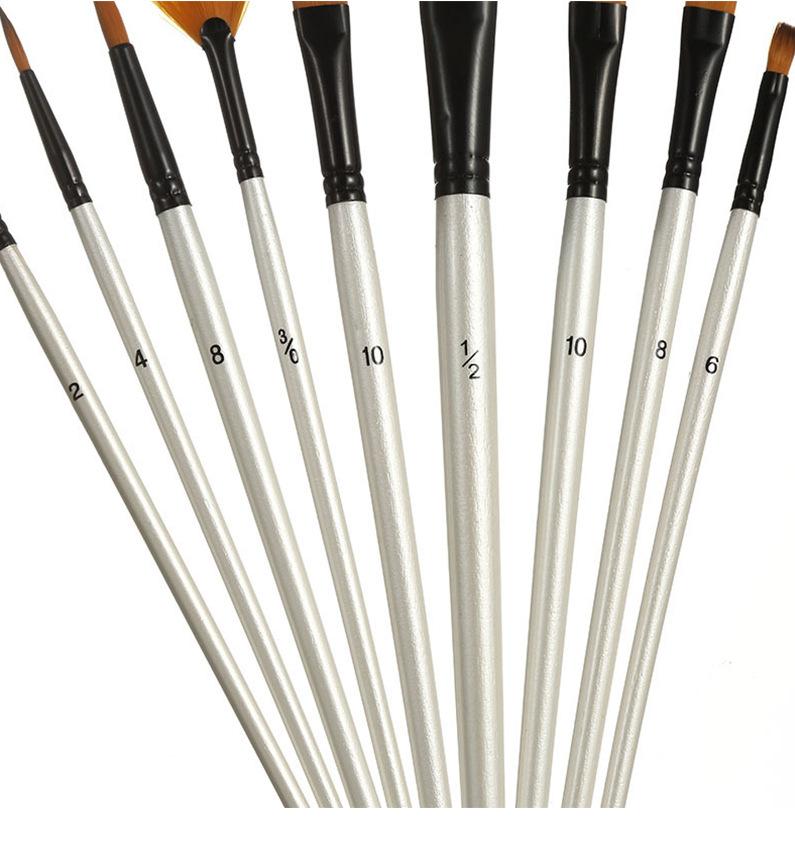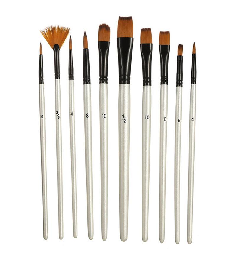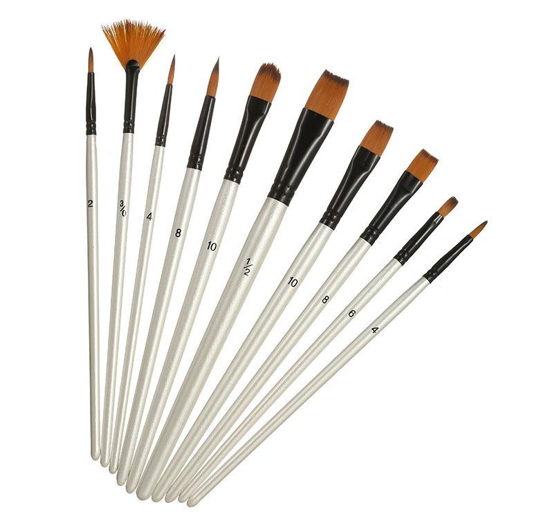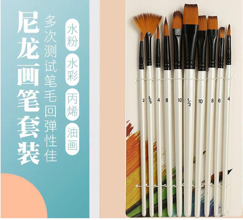 Nuevo juego de 10 pinceles de nailon blanco, lana, gouache, acuarela, óleo, suministros de arte para estudiantes.