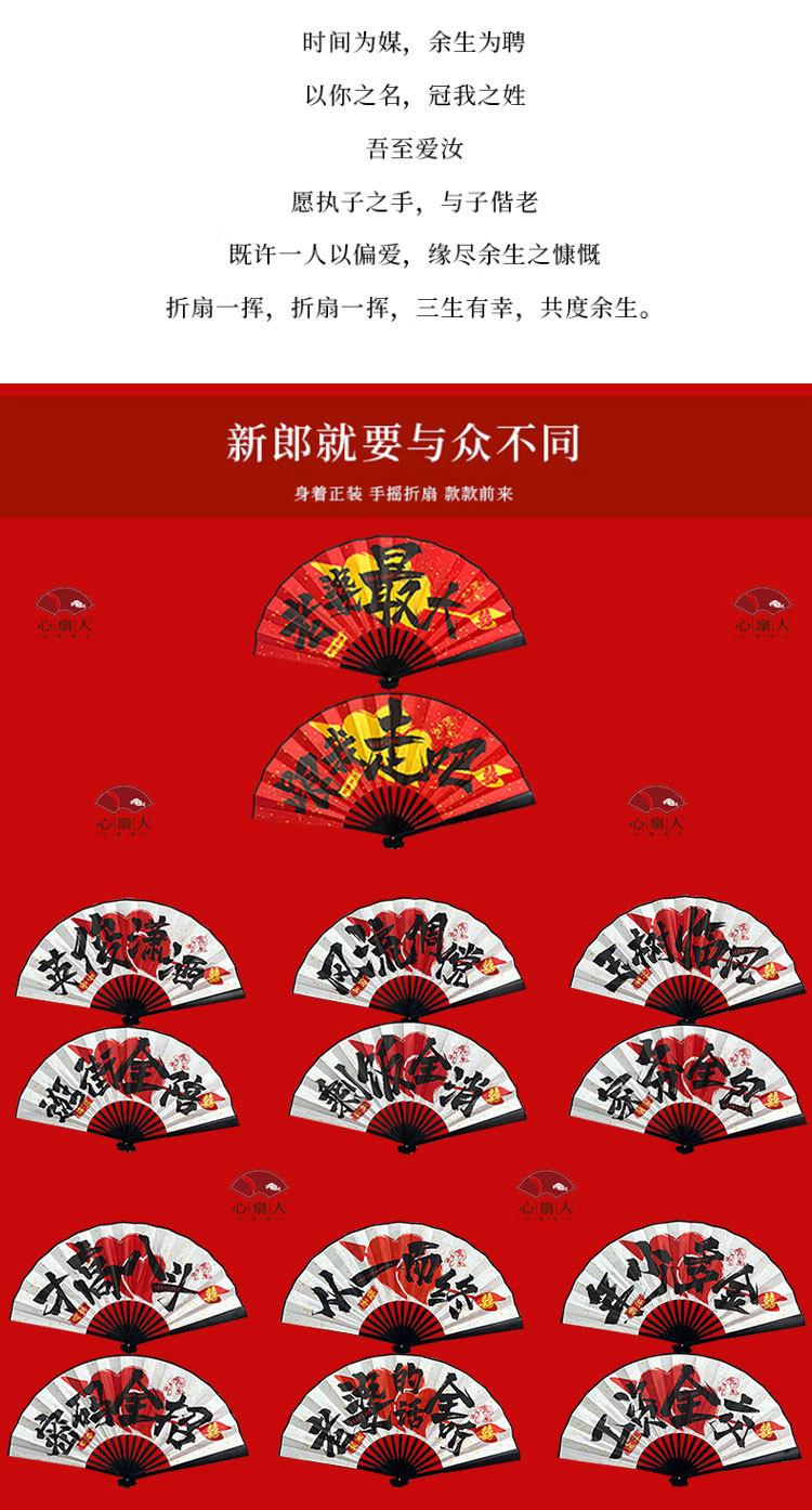 Abanico plegable de boda para novio de moda nacional de doble cara, abanico de boda para padrino, abanico de boda chino, abanico de utilería para boda, abanico masculino