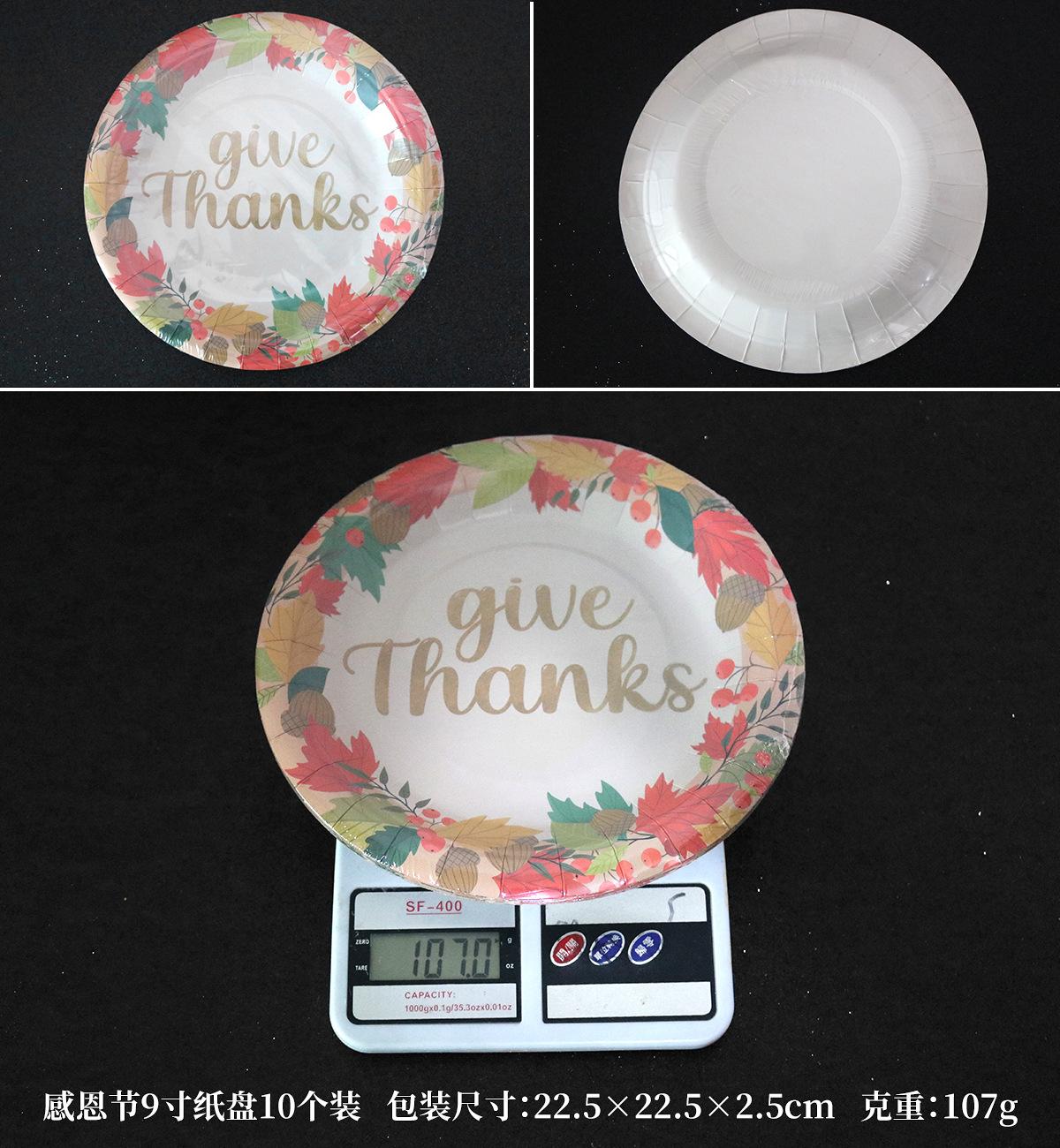 Nombre del Producto: Set de Vaso y Plato de Papel de Acción de Gracias