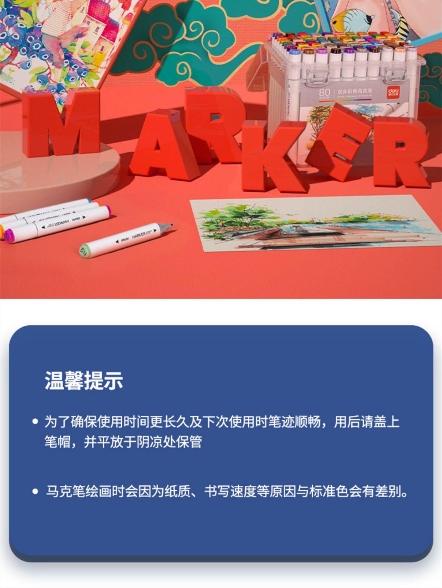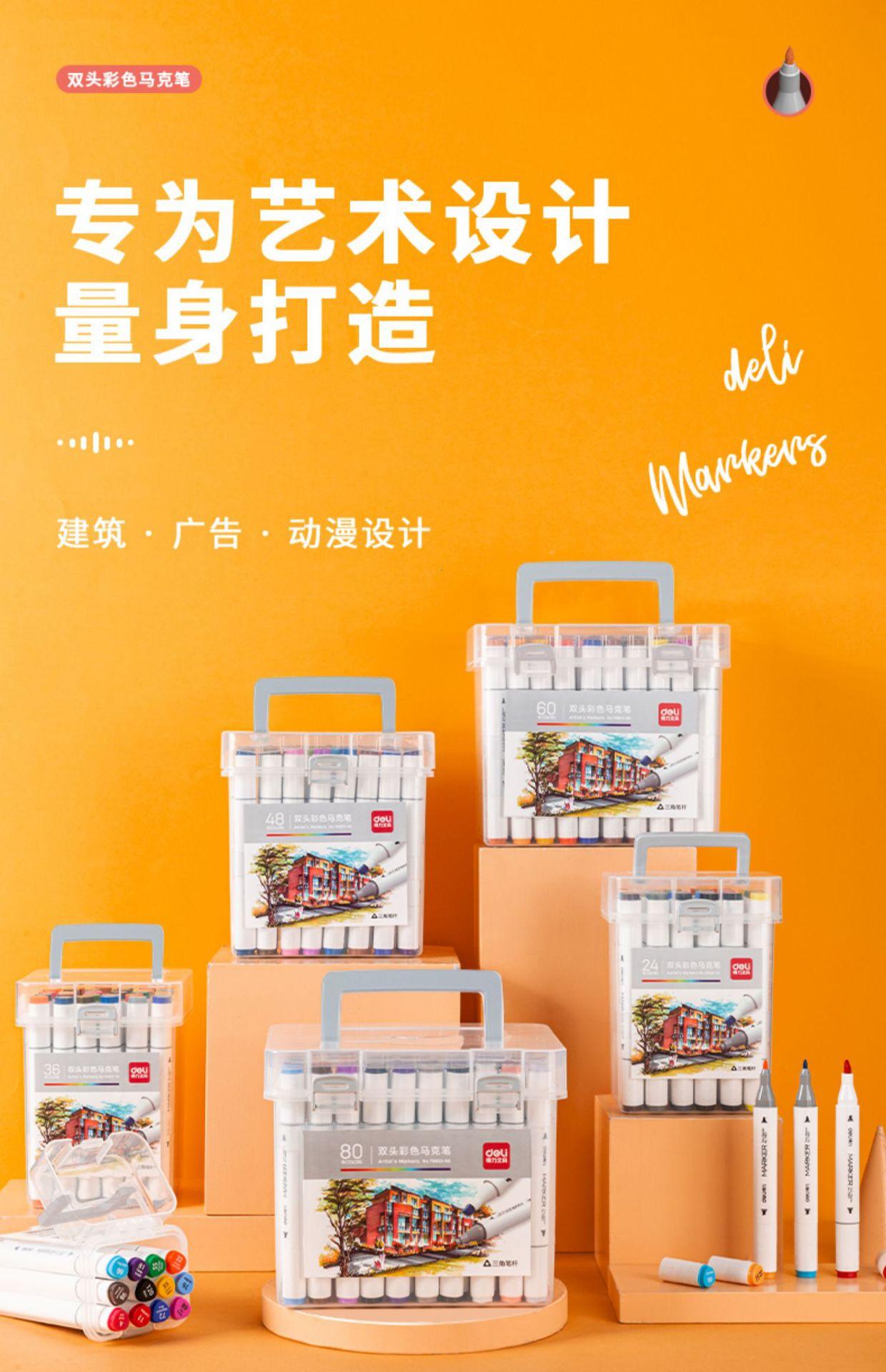 Marcador Deli para estudiantes de primaria, bolígrafo de doble punta de 48 colores, pincel de pintura de grafiti a base de agua para estudiantes de arte infantil