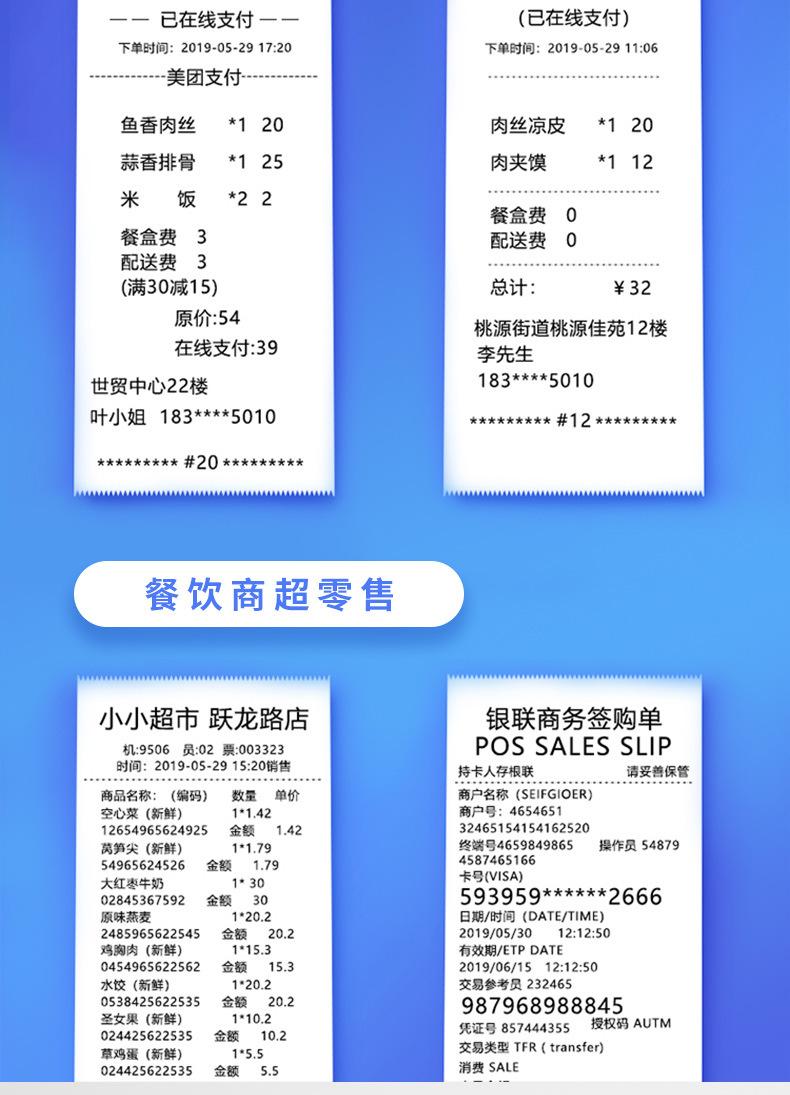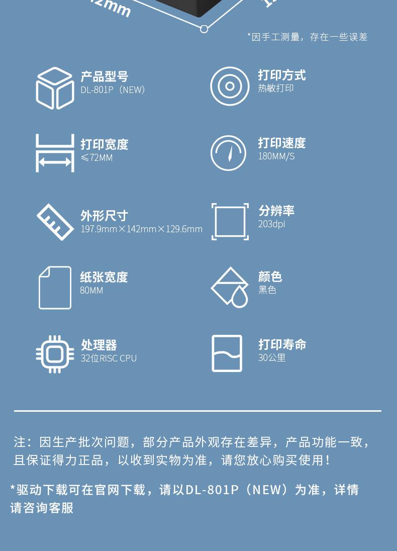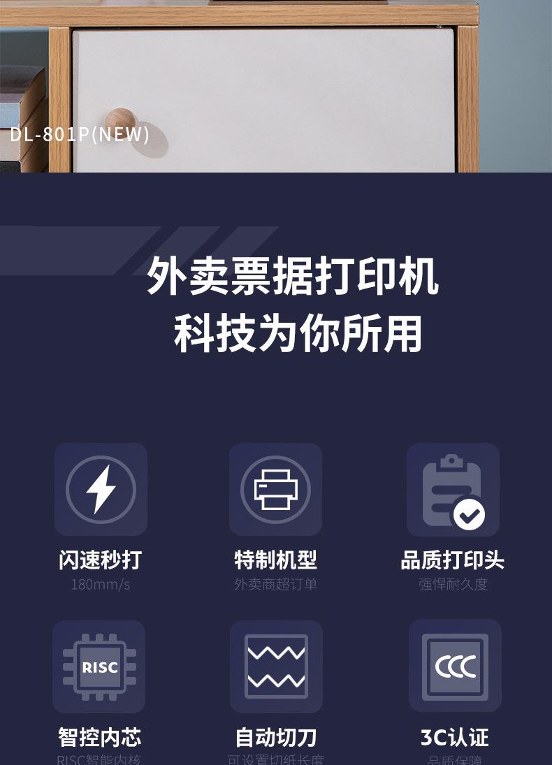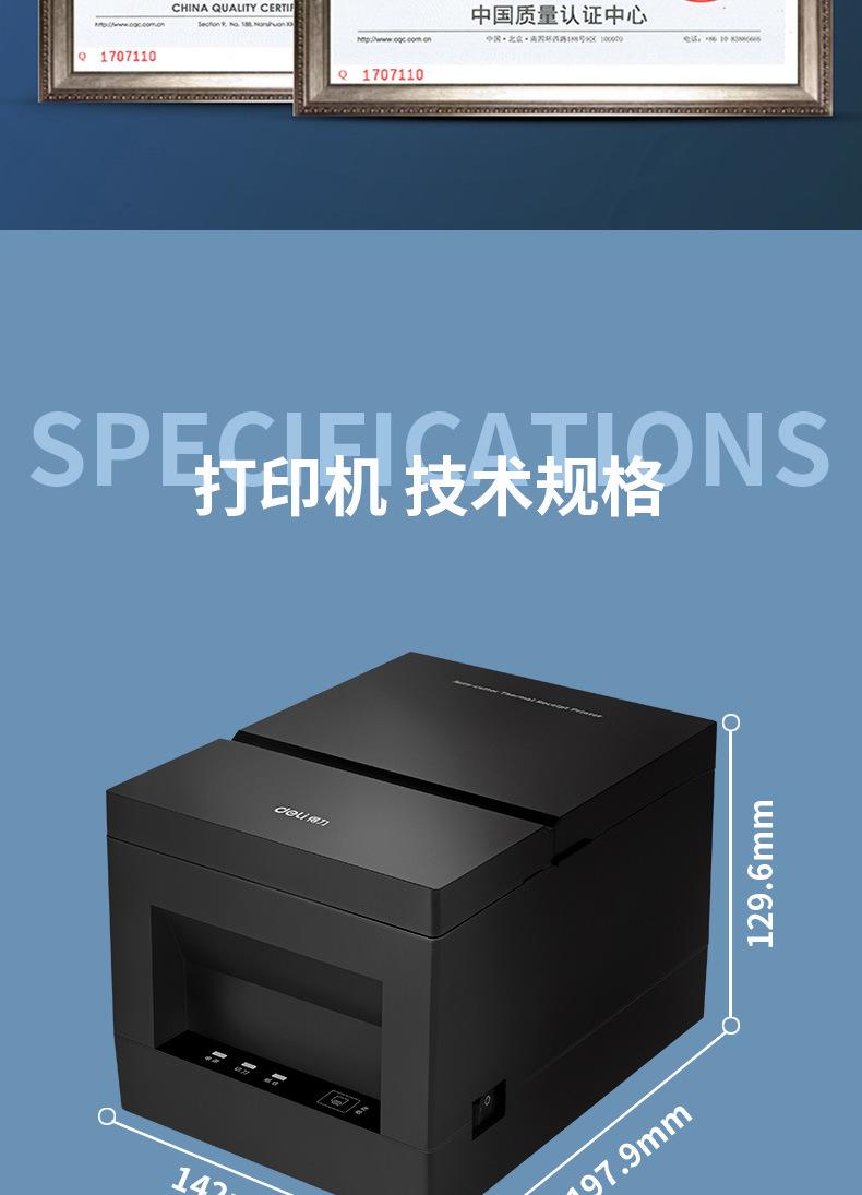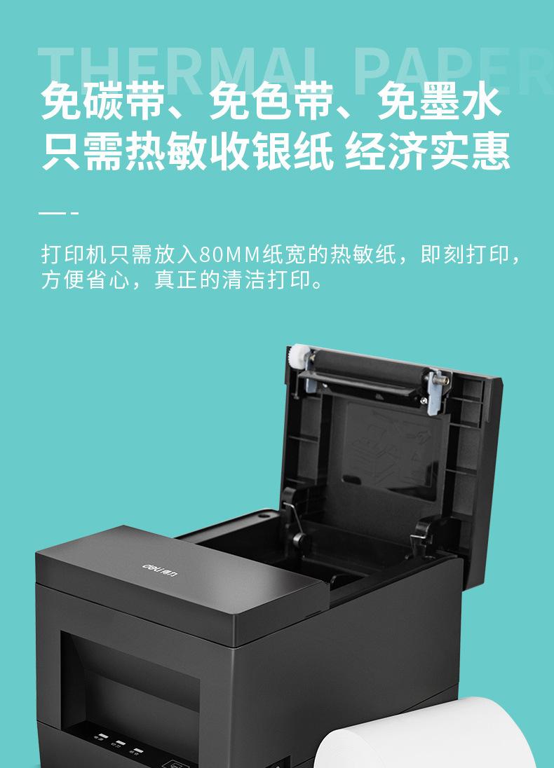 Impresora térmica de recibos para llevar Deli DL-801P ¿Grupo estadounidense hambriento? Impresión y corte automático de recibos de 80 mm