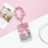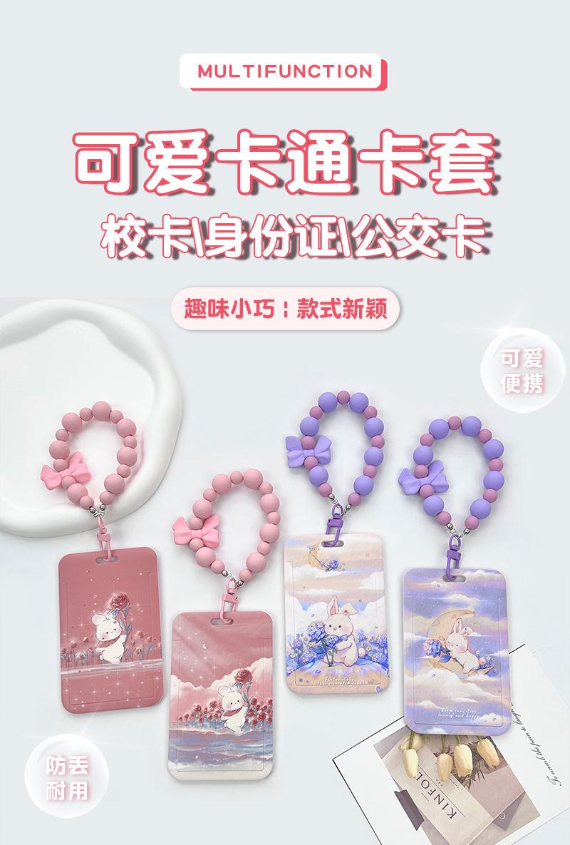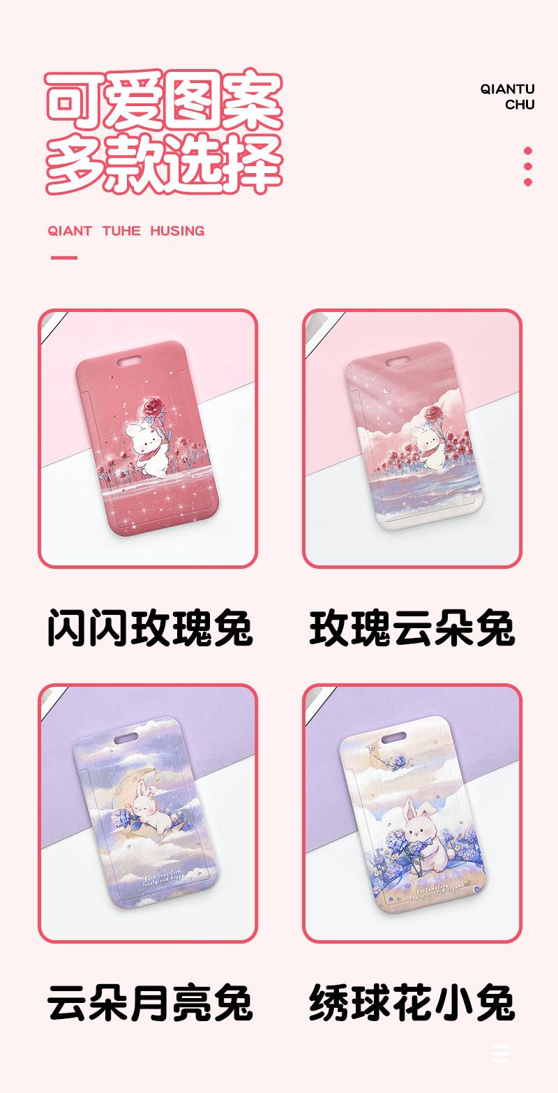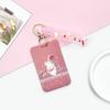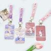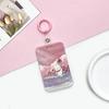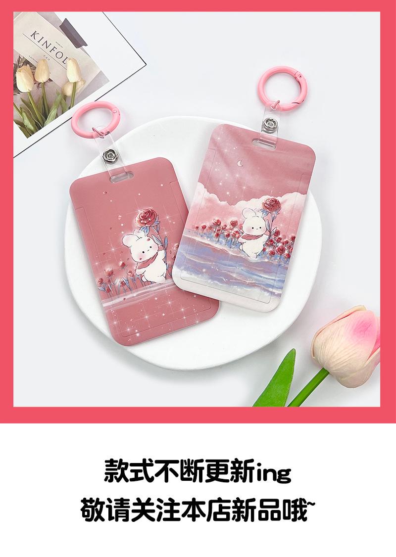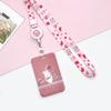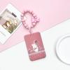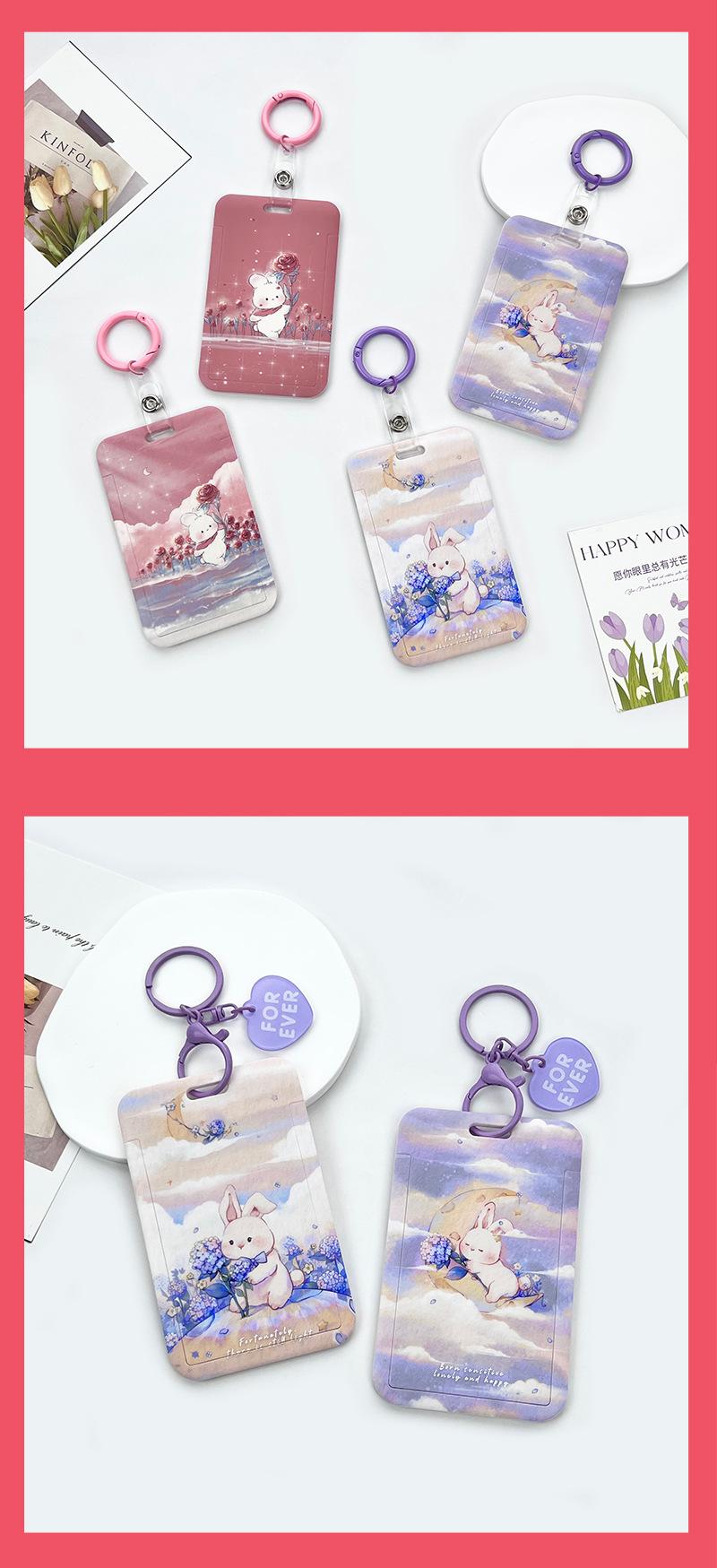 Estuche para tarjetas con diseño de conejo y nubes rosas estilo Ins, transparente, para estudiantes, con diseño de pecho, para tarjetas de juego, funda protectora para tarjetas colgantes de ABS