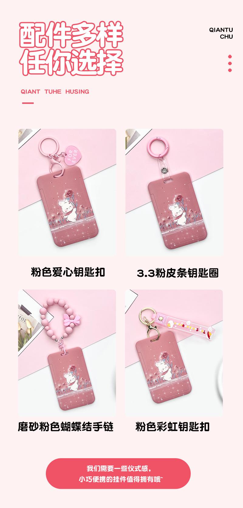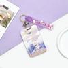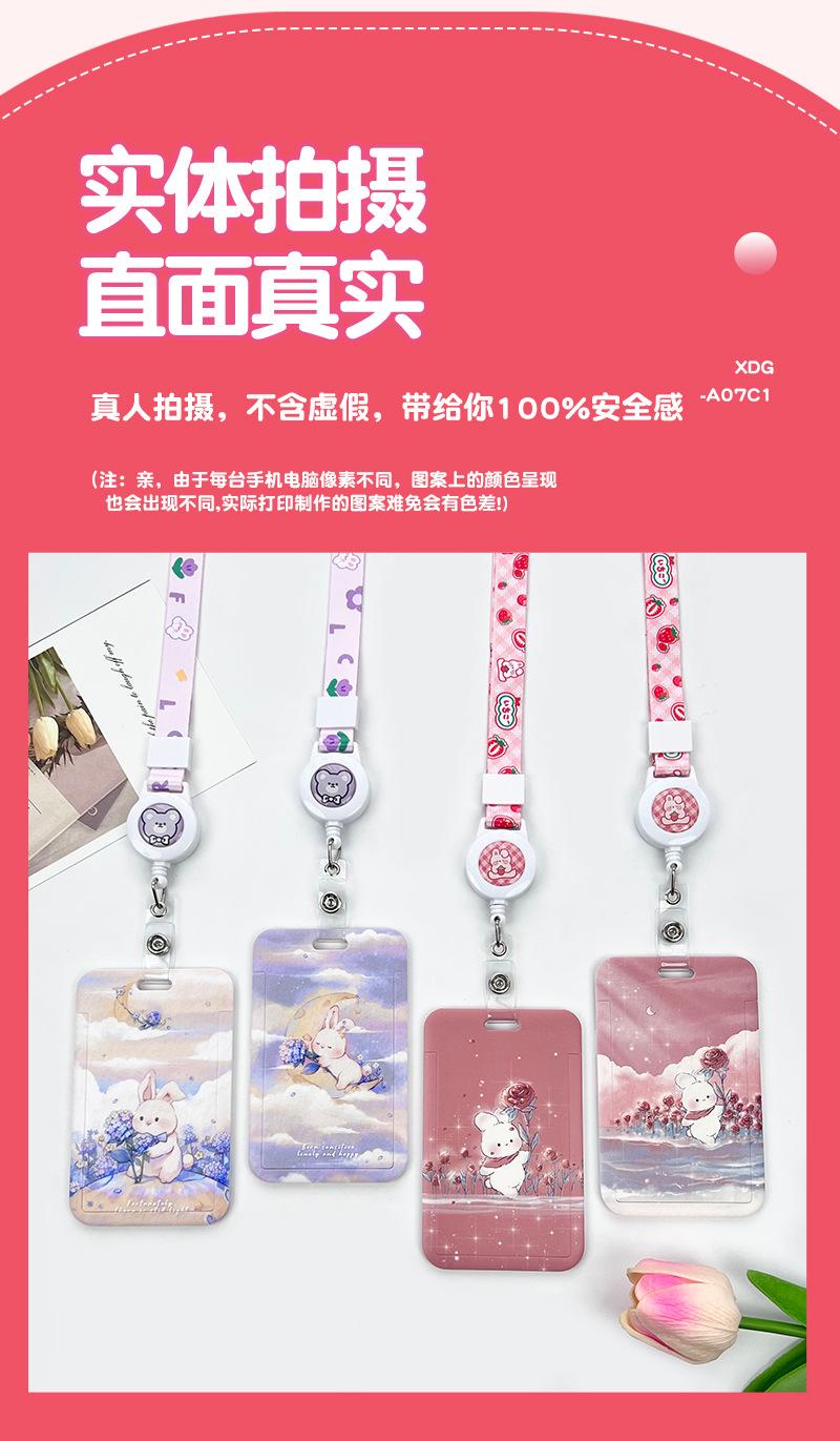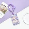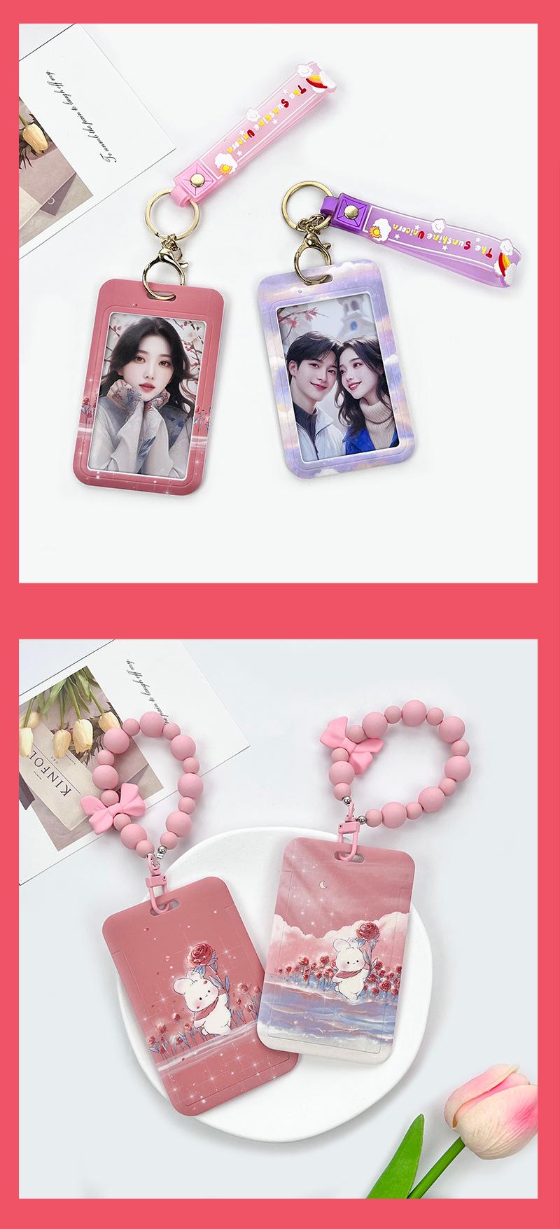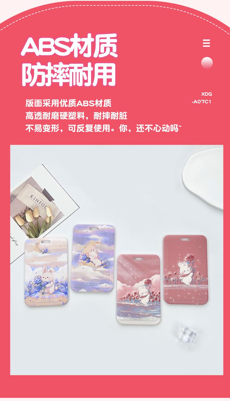 Estuche para tarjetas con diseño de conejo y nubes rosas estilo Ins, transparente, para estudiantes, con diseño de pecho, para tarjetas de juego, funda protectora para tarjetas colgantes de ABS