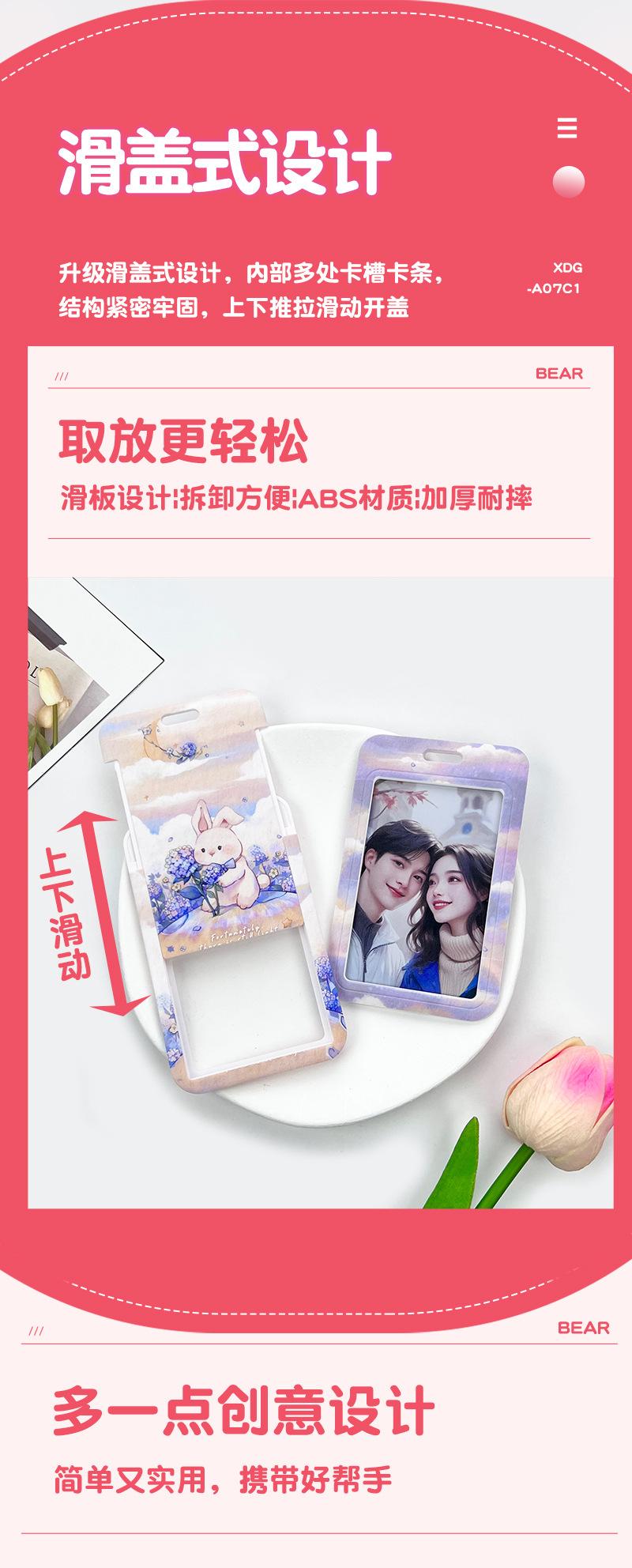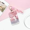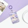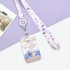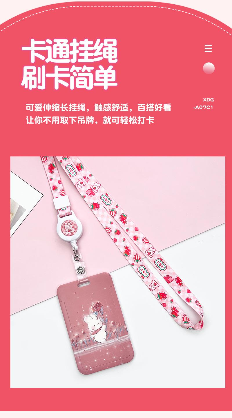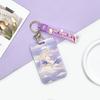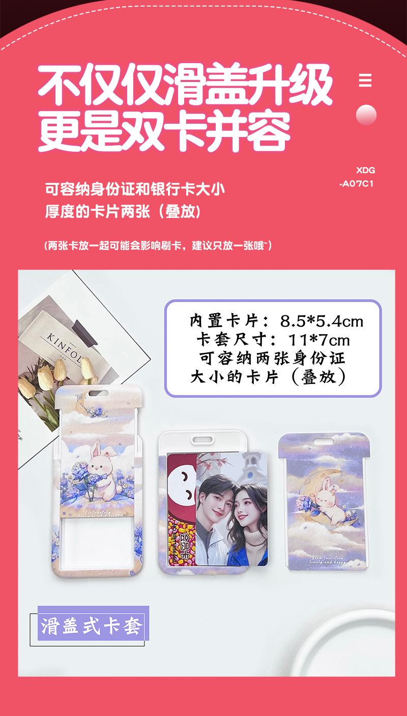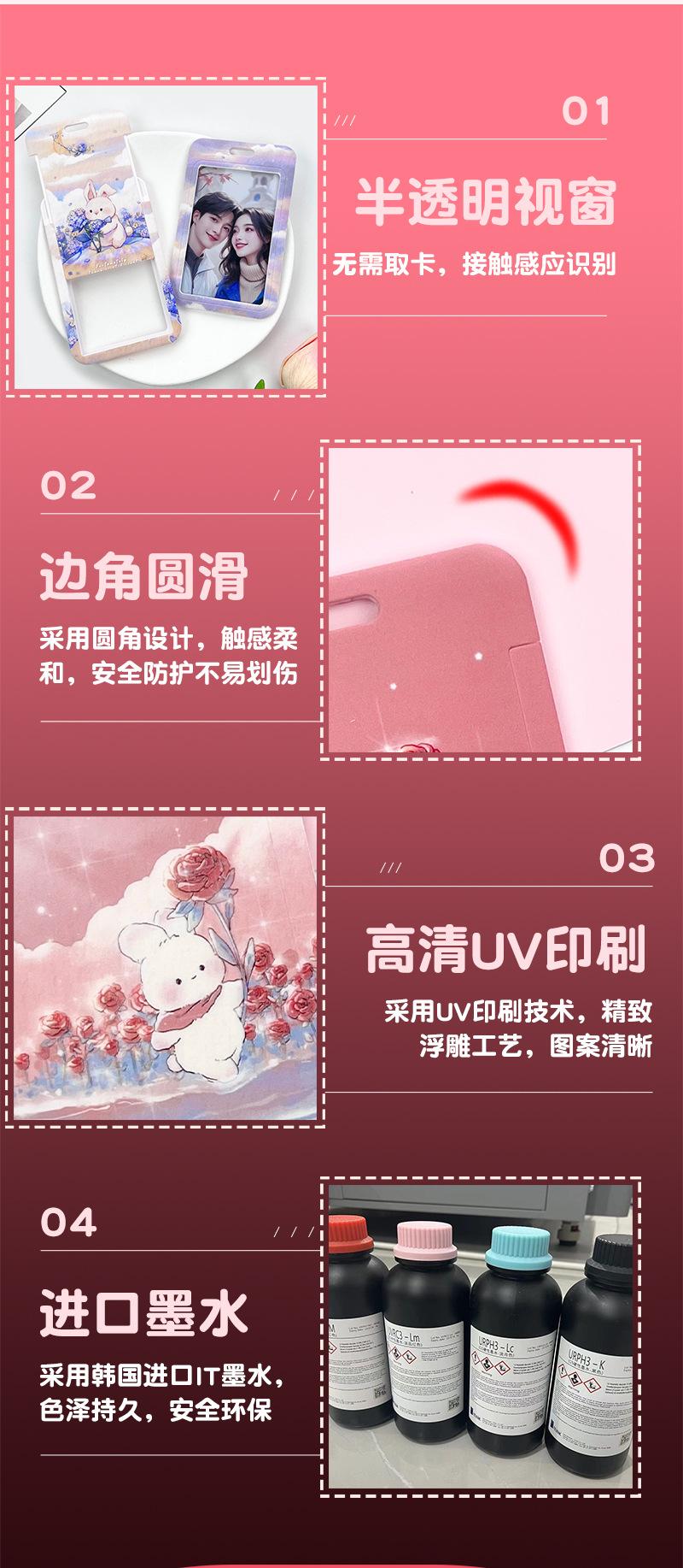 Estuche para tarjetas con diseño de conejo y nubes rosas estilo Ins, transparente, para estudiantes, con diseño de pecho, para tarjetas de juego, funda protectora para tarjetas colgantes de ABS