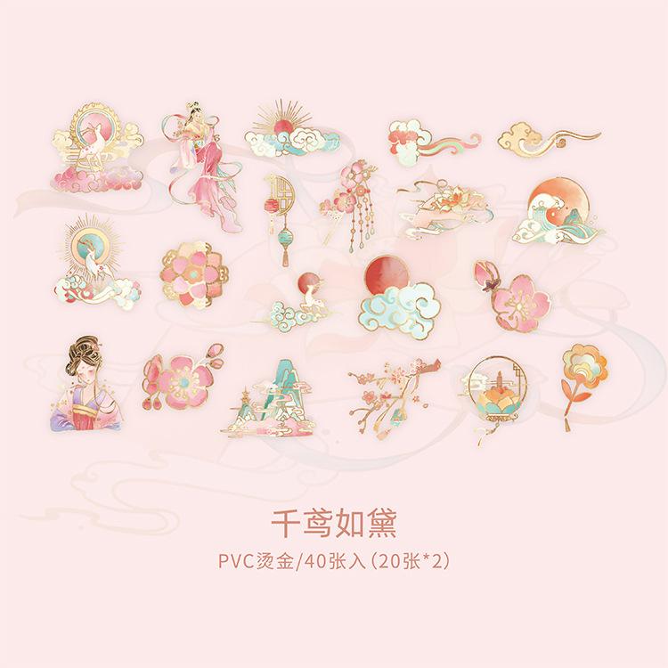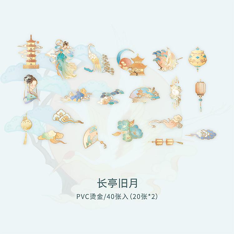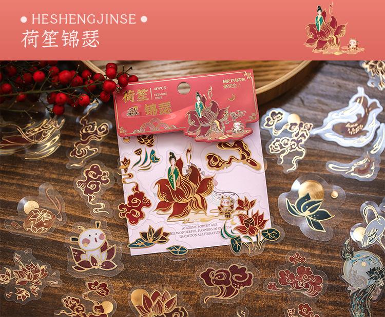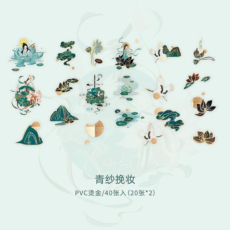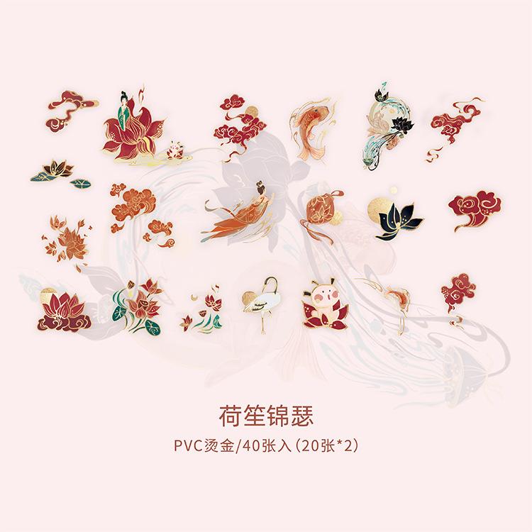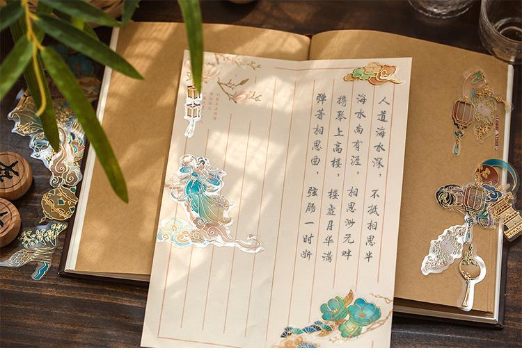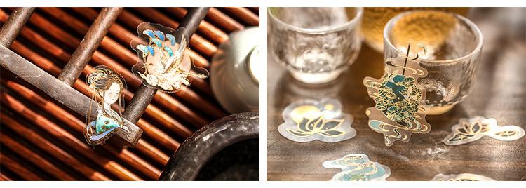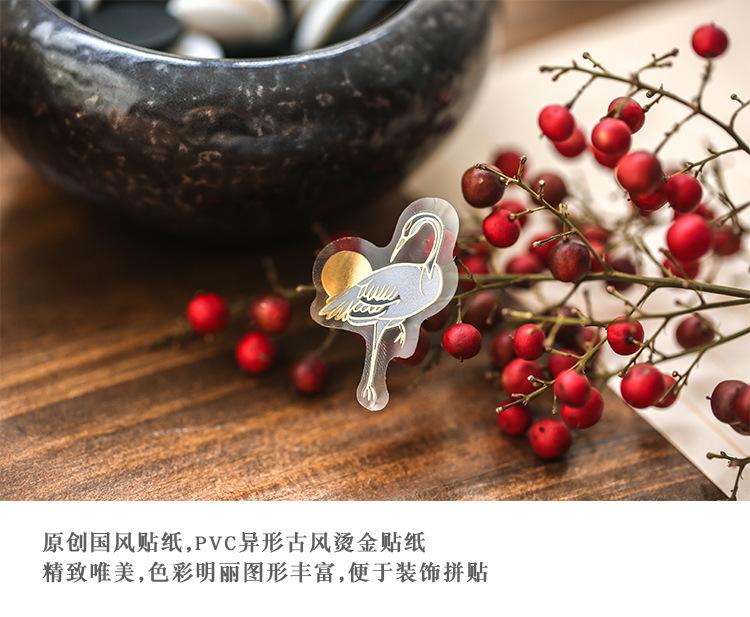 Pegatina de estilo chino con estampado en caliente, de color medio sueño, estilo antiguo, para bolso, diario, libro, material decorativo, patrón, pegatina DIY