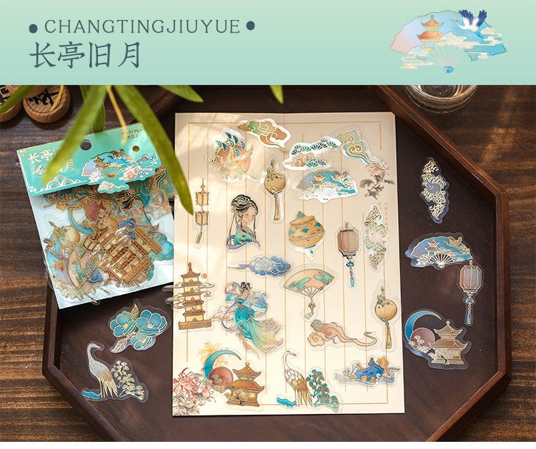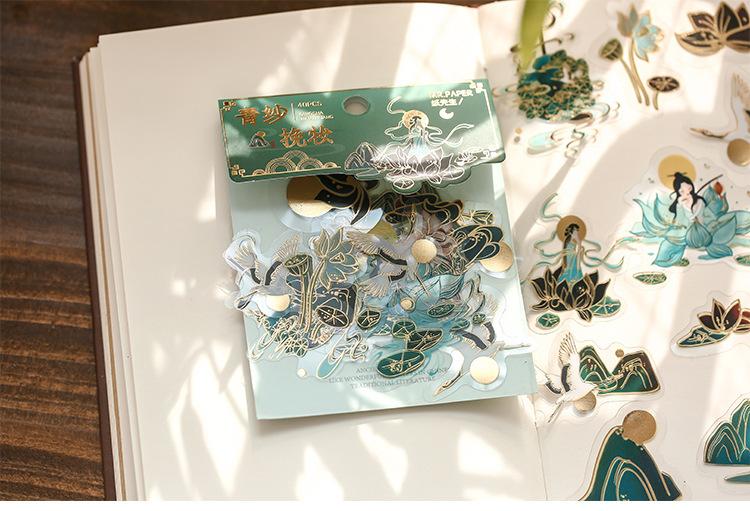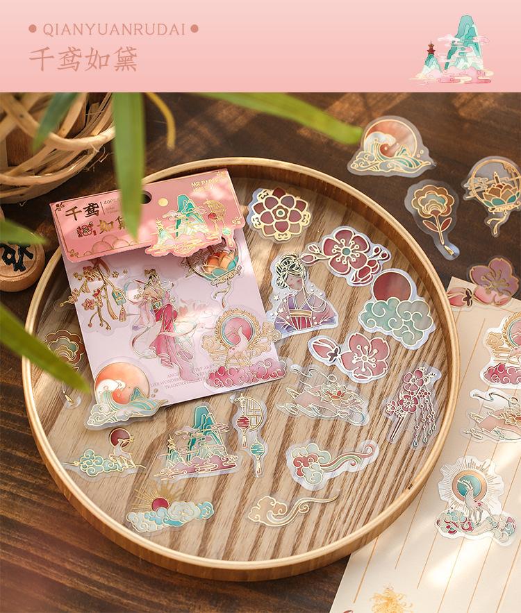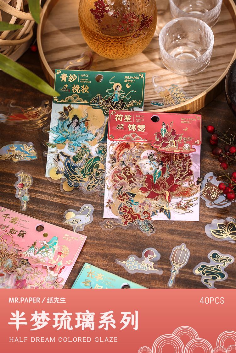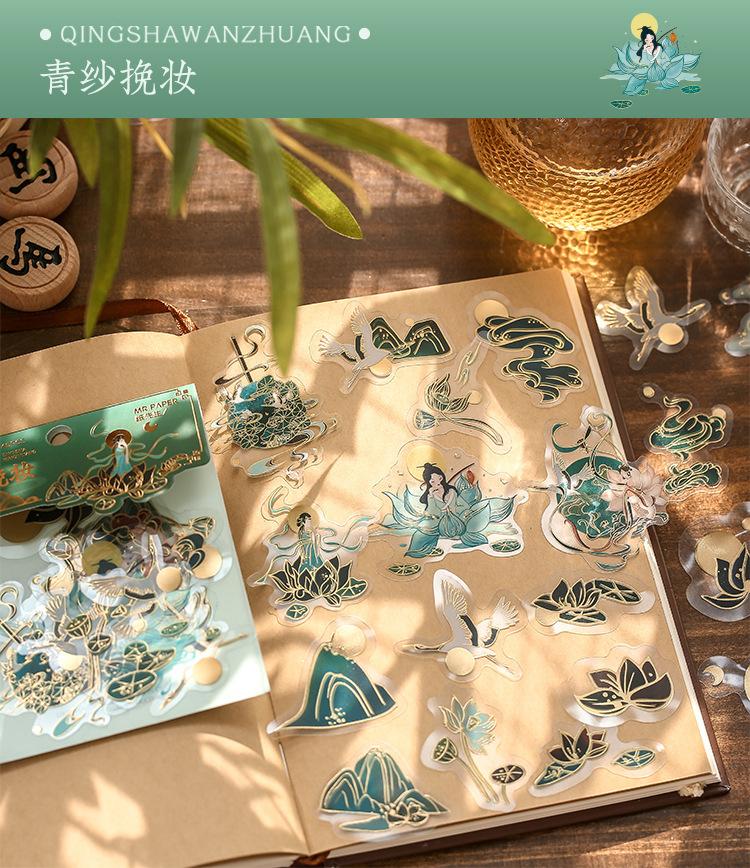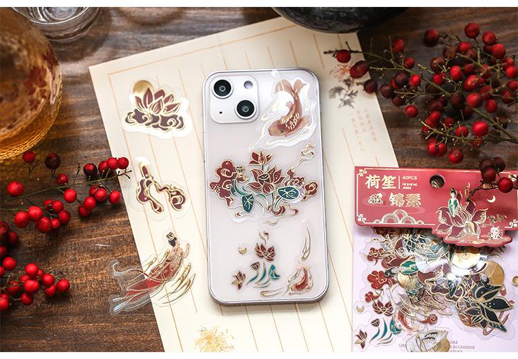 Pegatina de estilo chino con estampado en caliente, de color medio sueño, estilo antiguo, para bolso, diario, libro, material decorativo, patrón, pegatina DIY