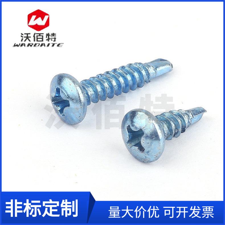Tornillo autorroscante de cabeza plana de zinc azul y blanco, tornillo de cola de milano con perforación cruzada de cabeza redonda, M4, venta al por mayor de fábrica