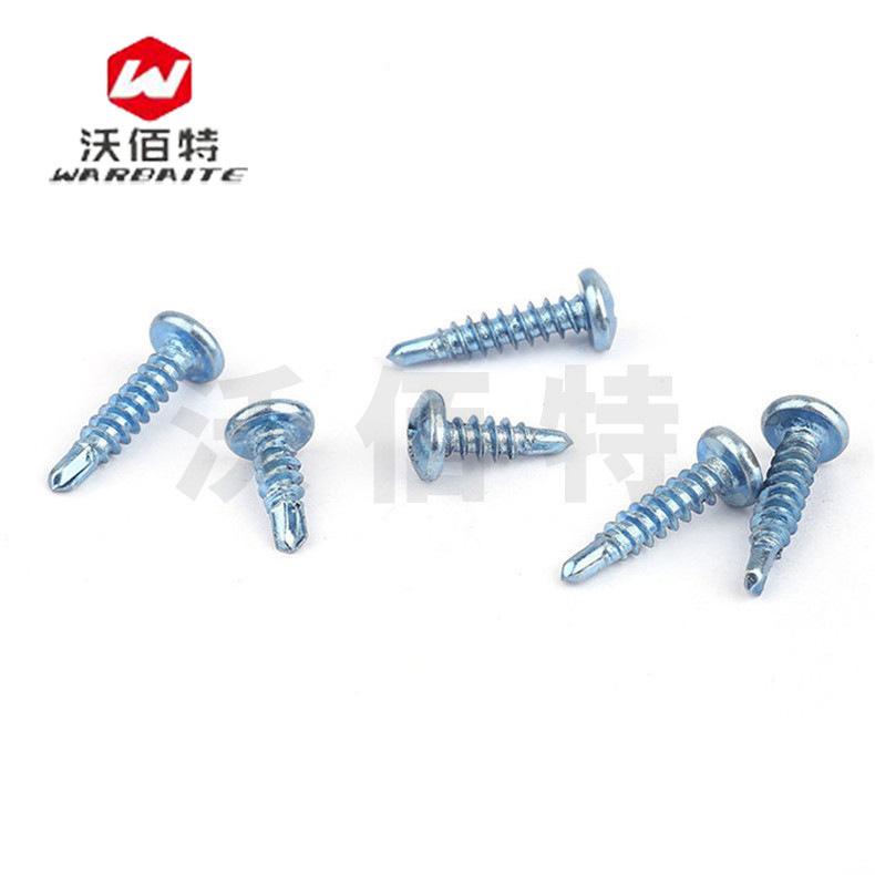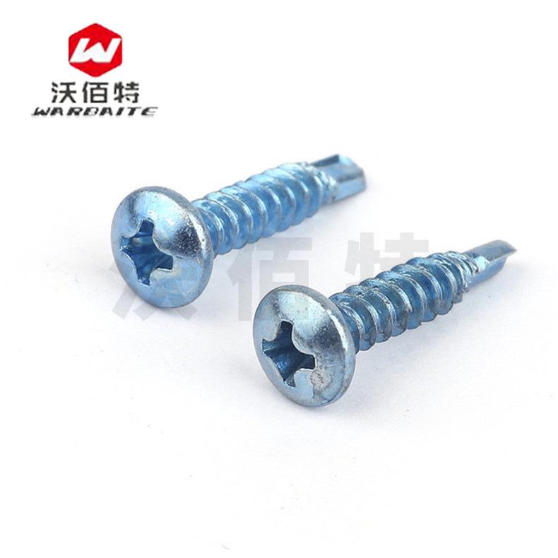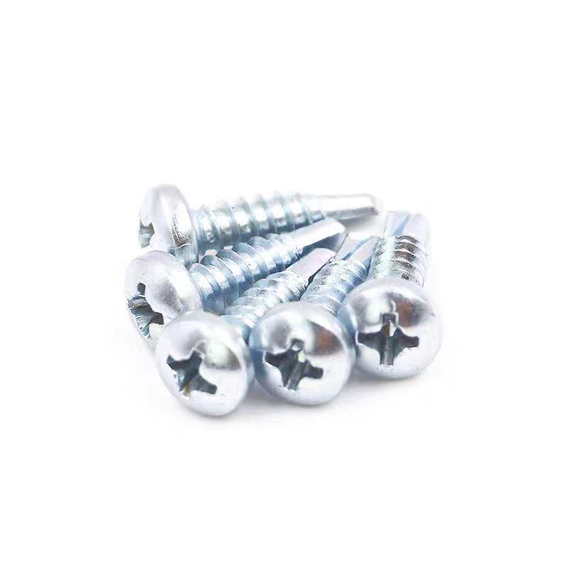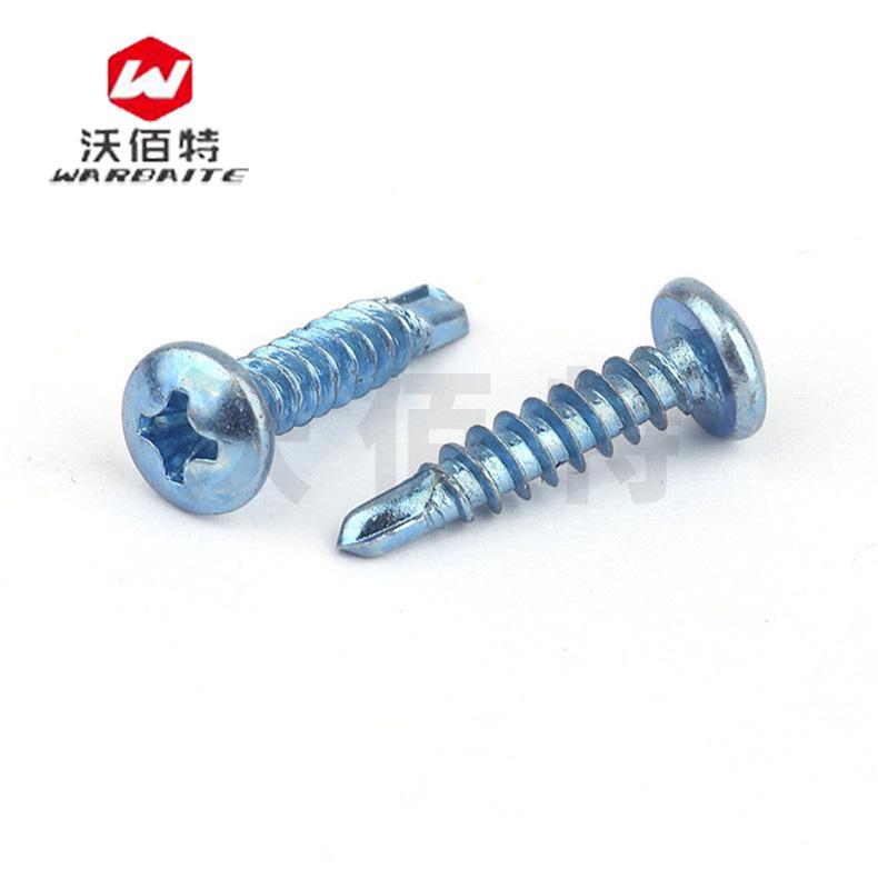 Fabricantes mayoreo azul y blanco zinc cabeza de sartén tornillos autoperforantes cabeza redonda cruz tornillos de perforación tornillos de cola de milano M4.2