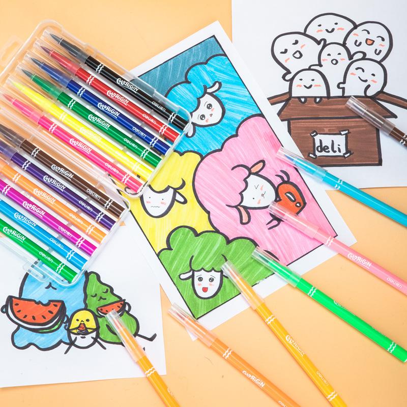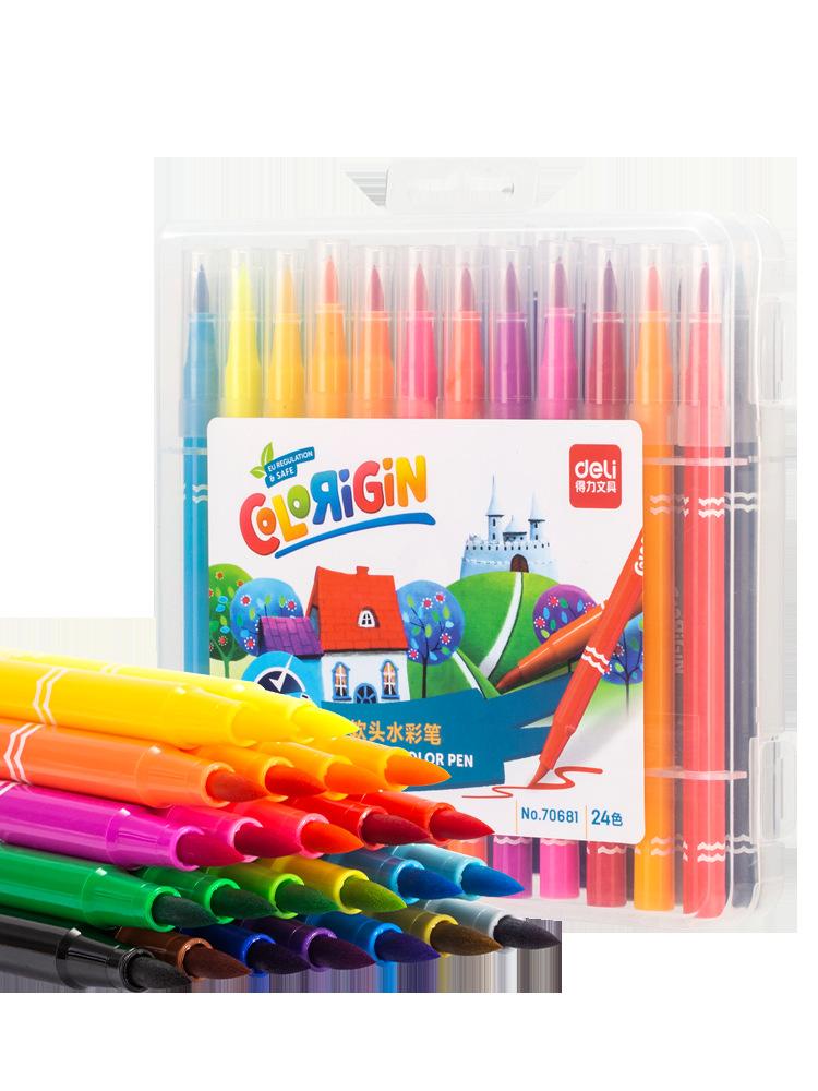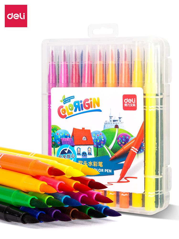 Plumones de Acuarela Punta Suave Deli Set de Dibujo para Estudiantes Niños Lavable 12 Colores 18 Colores 24 Colores 36 Colores 48 Colores Plumones