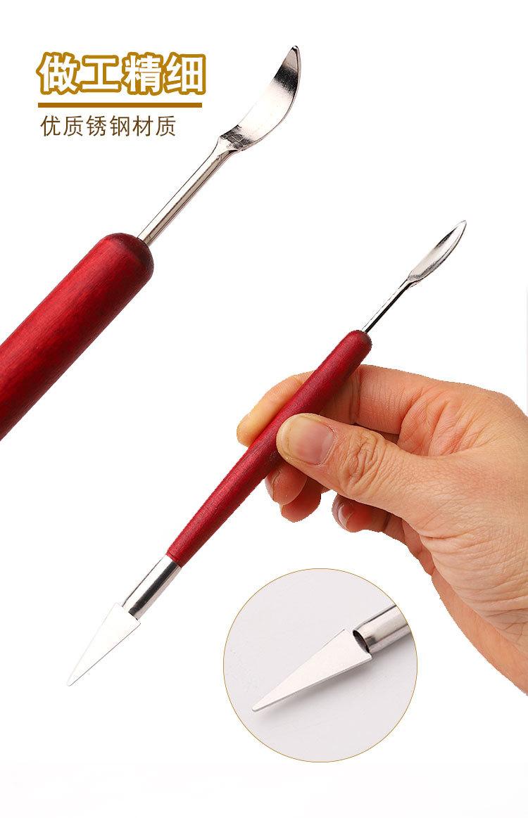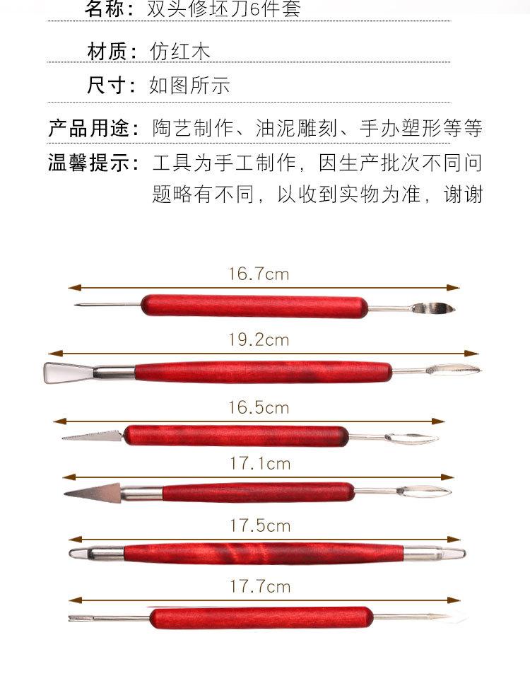 Juego de 6 herramientas de cerámica de madera roja para esculpir arcilla, hechas a mano, con cuchillo de tallado de doble punta.
