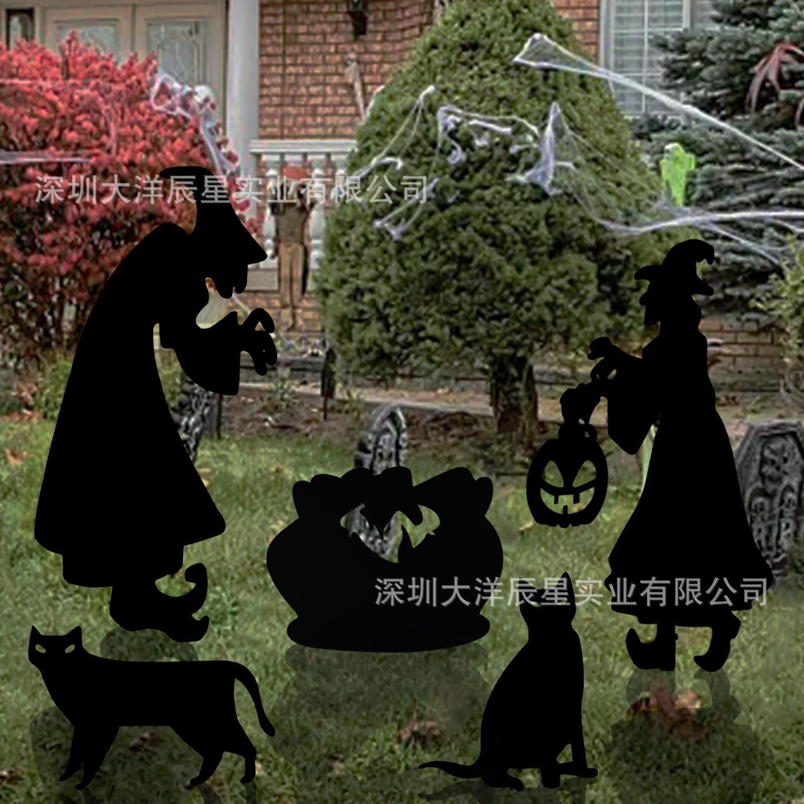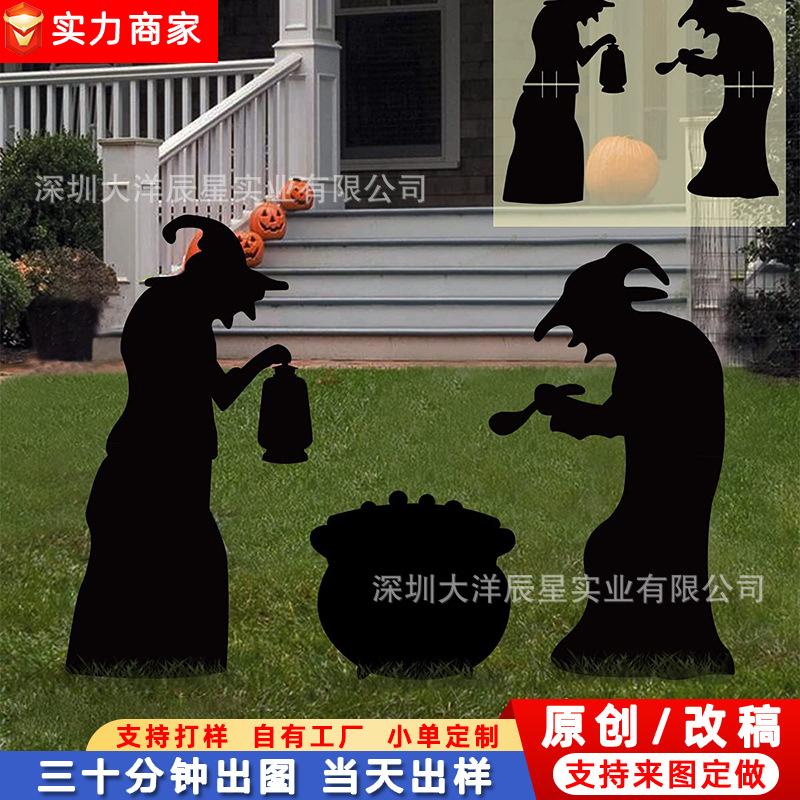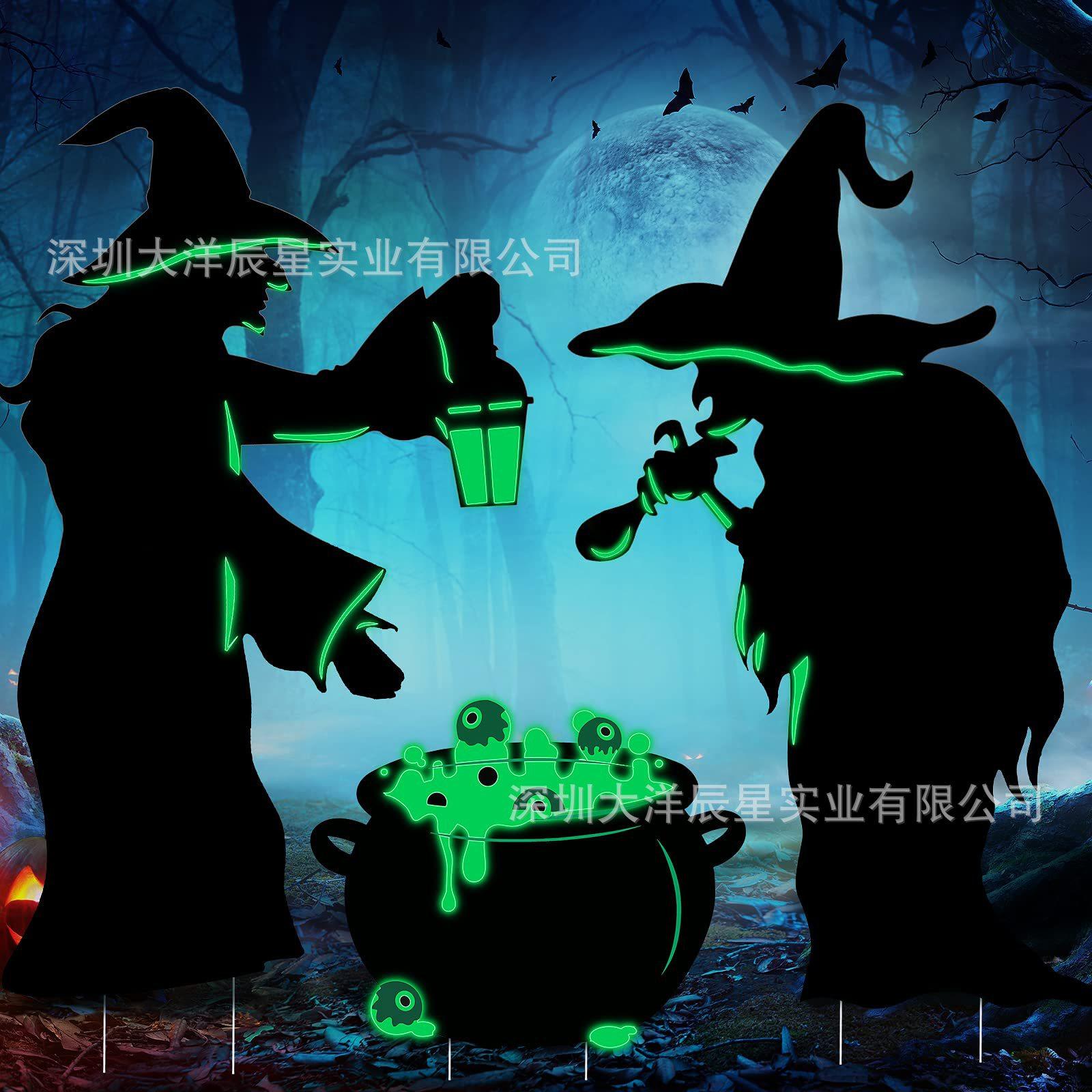 Placa de Halloween transfronteriza para patio, jardín al aire libre, horror, luminosa, bruja, caldero, silueta, letreros decorativos