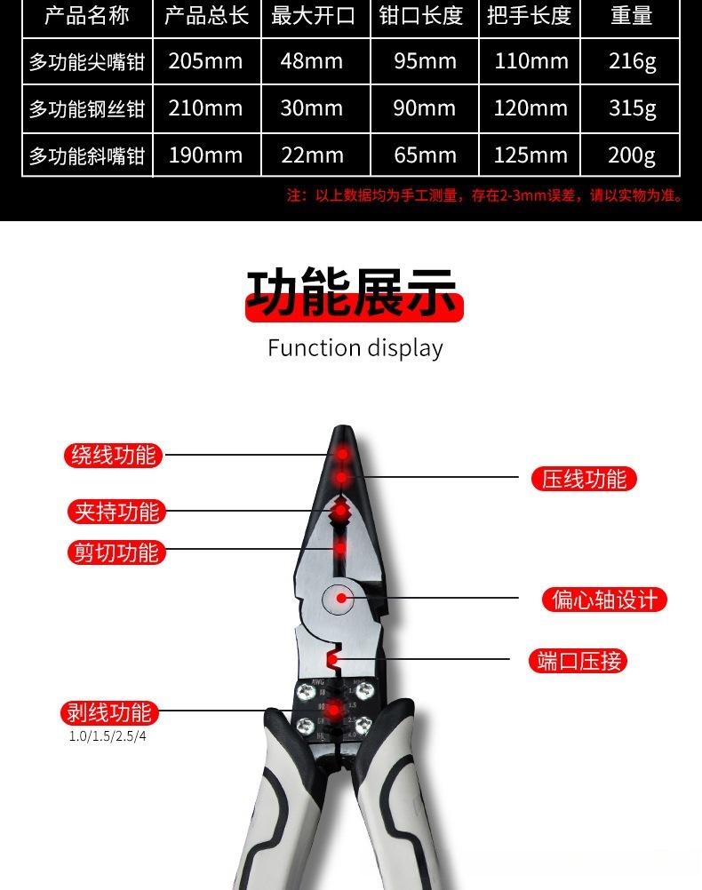 Multifunctional wire pliers, Multi-function pointed nose pliers, Multi-function diagonal pliers