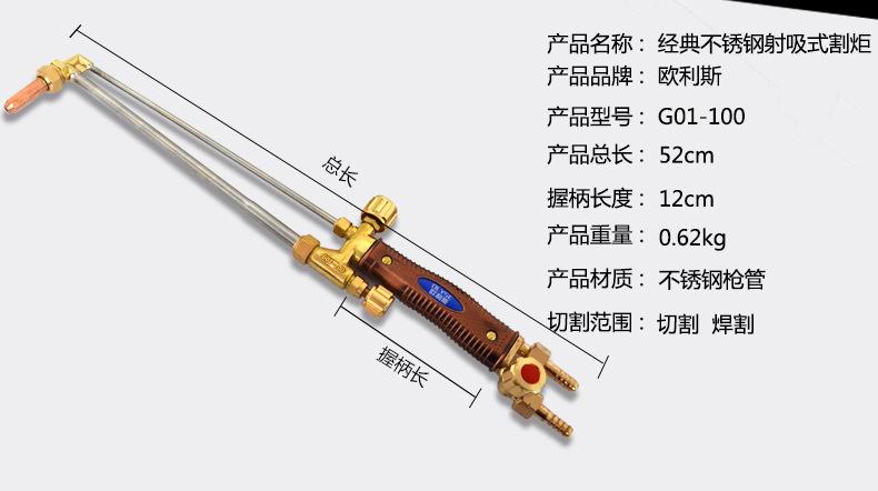 Pistola de corte de acero inoxidable, oxigenación, acetileno, propano, cuchillo de corte, herramienta de corte a gas, soplete de corte por succión, tipo G01-30/100