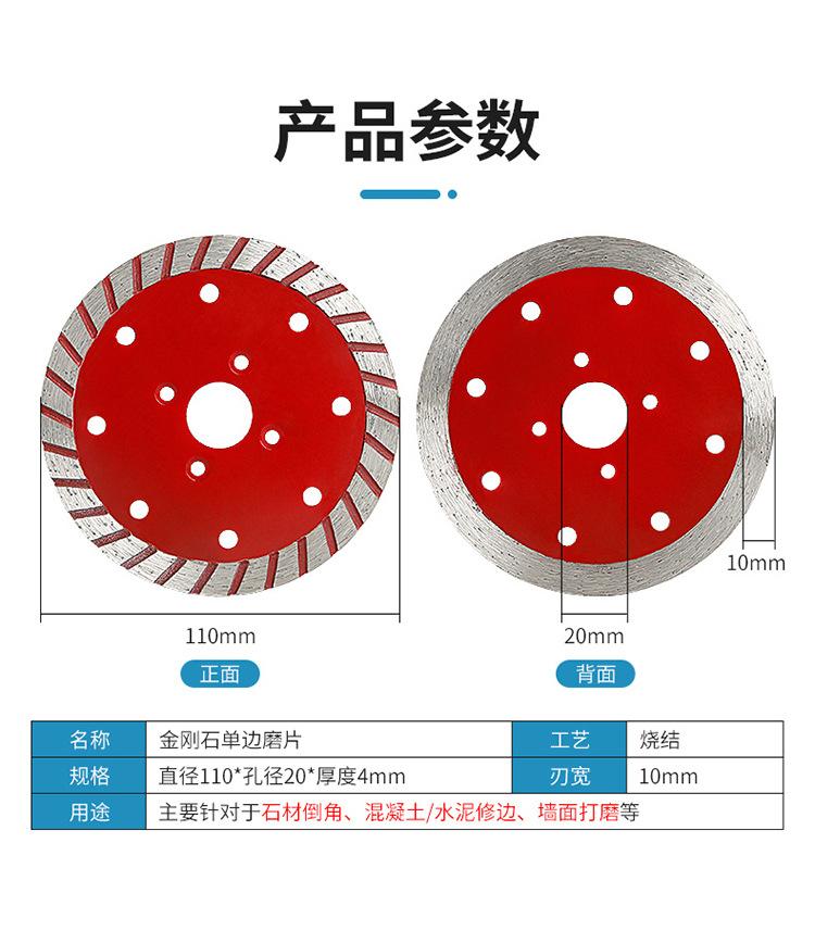 Amoladora angular de un solo lado con diamante sinterizado 110 para granito, hormigón, piedra, biselado, hoja de sierra engrosada