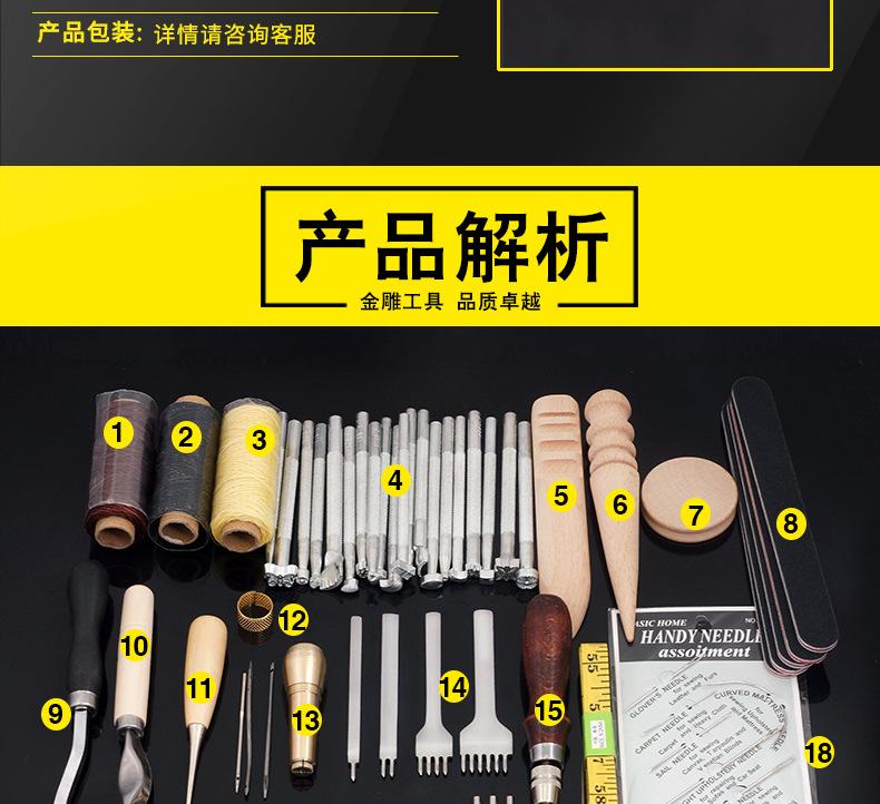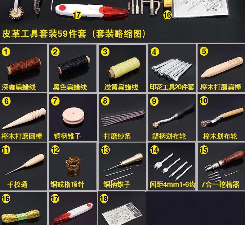 Traje de Herramientas de Cuero Golden Eagle de 59 piezas Hecho a Mano Cuero Cosido a Mano Traje DIY Diamante Cortar Herramientas de Cuero 20