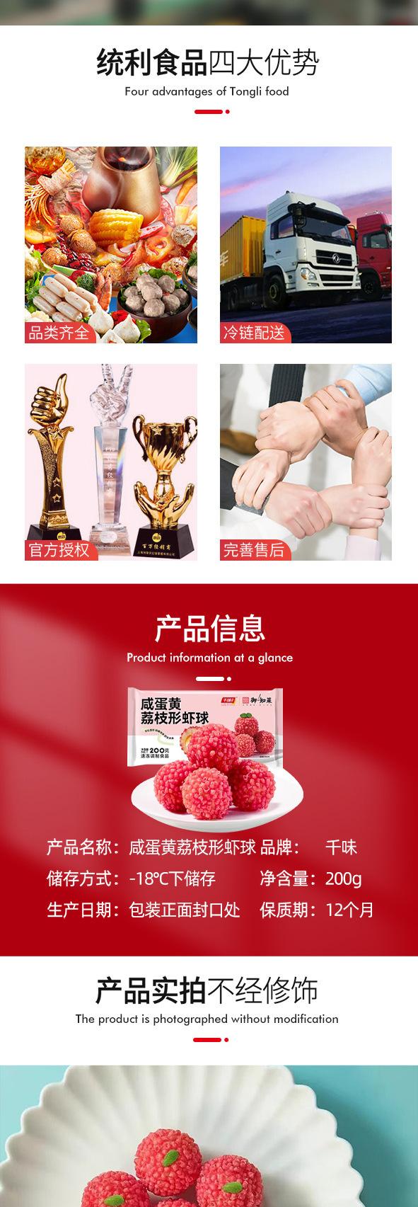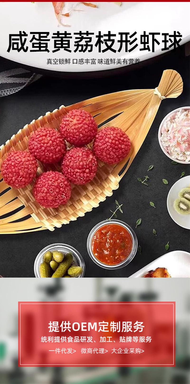 Bolas de camarón con yema de huevo salada de mil sabores con forma de lichi congeladas semicocidas camarón suave