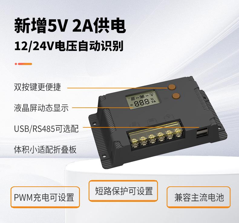 Controlador Solar Wo 10A20A Monitoreo Solar RV Luz de Calle Doméstico Controlador Solar PWM