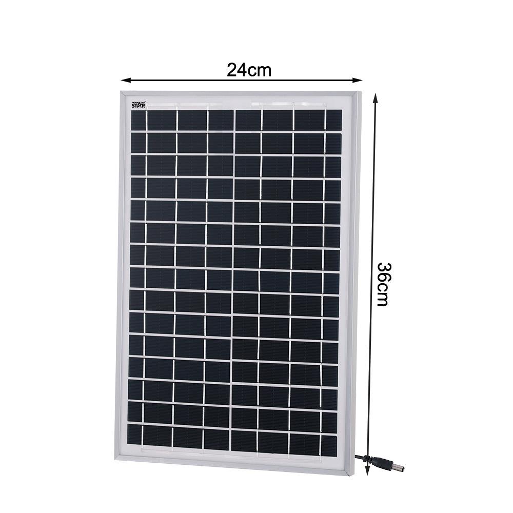 Panel solar monocristalino ST-002, marca WINNING STAR, caja de color, 15 V/10 W, panel solar monocristalino con marco de aleación de aluminio, DFS-4012 (ST-4004) con soporte para ventilador vertical. Tamaño del panel solar: 36 x 24 cm, con cable de 5 metros + enchufe CC 5521, corriente de 666 mA, el diodo de derivación debe conectarse a la caja de conexiones. Parámetros estándar en inglés de la marca WINNING STAR en la parte posterior, logotipo personalizado de nuestra empresa laminado en la esquina superior izquierda. Empaquetado en caja de color, 20 unidades por caja.