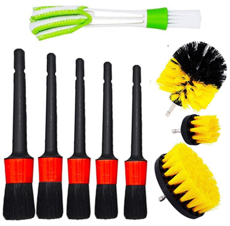 Nuevo juego de 9 cepillos para huecos de salida de aire de coche, cepillo para detalles de huecos, cepillo de limpieza para coche, cepillo para lavado de coche.